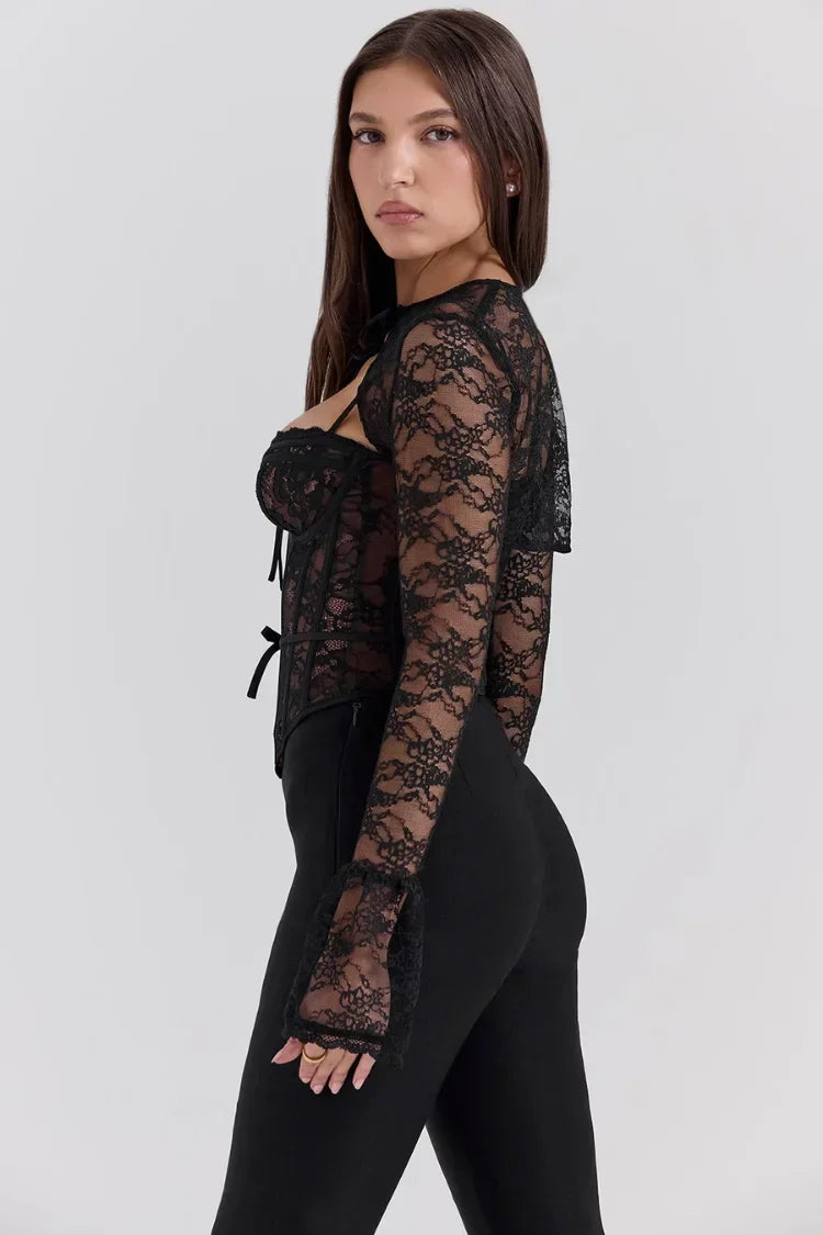 Jasmine, romantizm ve sedasyonu bir araya getiren şık bir korsajdır. Hafif astarlı cup'lar ve silueti şekillendiren tasarımıyla, zarif bir şekilde vücut hatlarını vurgular. Uzun kollu yapısı ve dantel detayları ona eşsiz bir hava katar. Beldeki fiyonku ile şık bir kum saati formu yaratır, her tarzda mükemmel uyum sağlar.