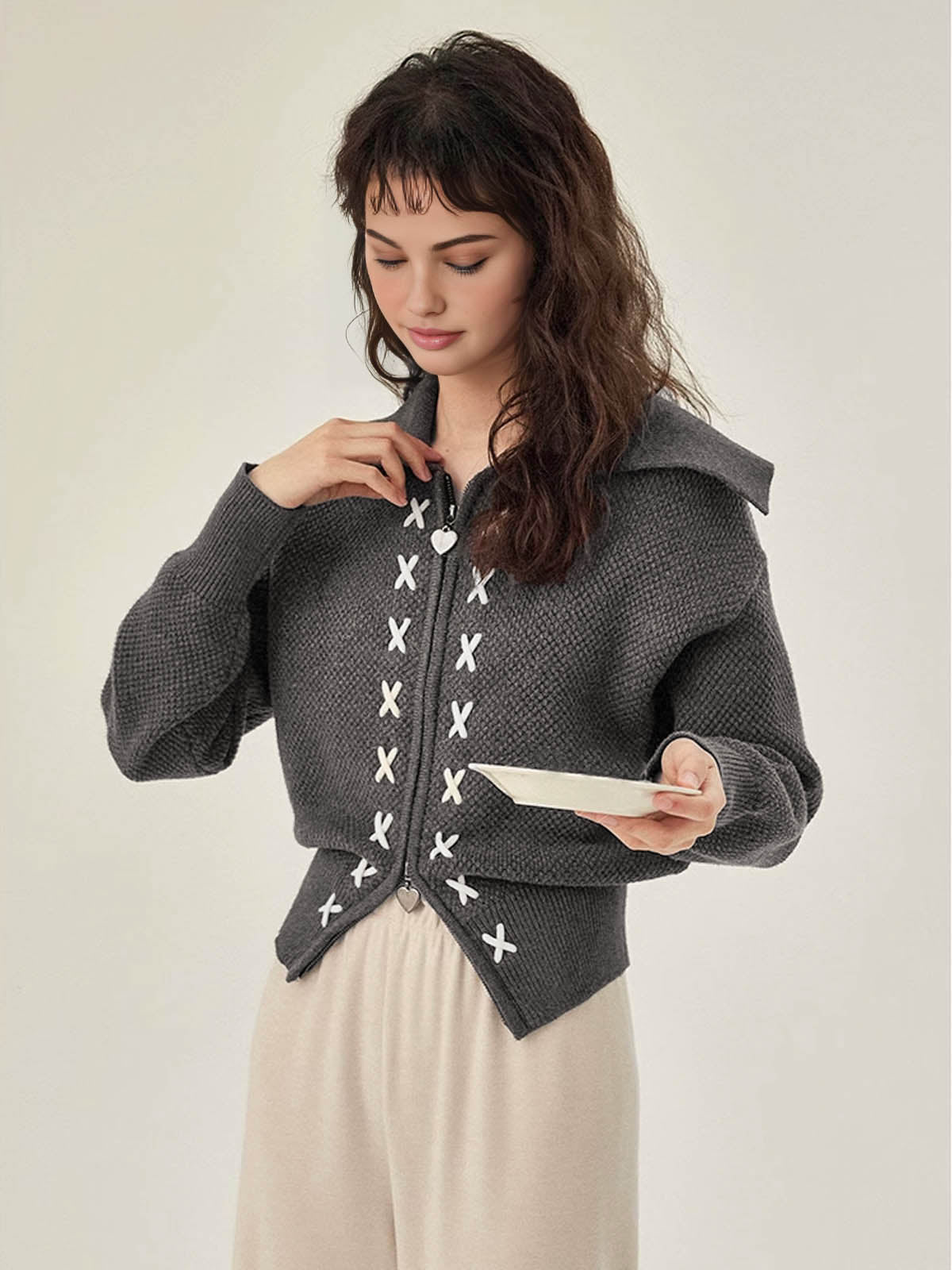 Denizci Yaka Çift Yönlü Fermuarlı Hırka