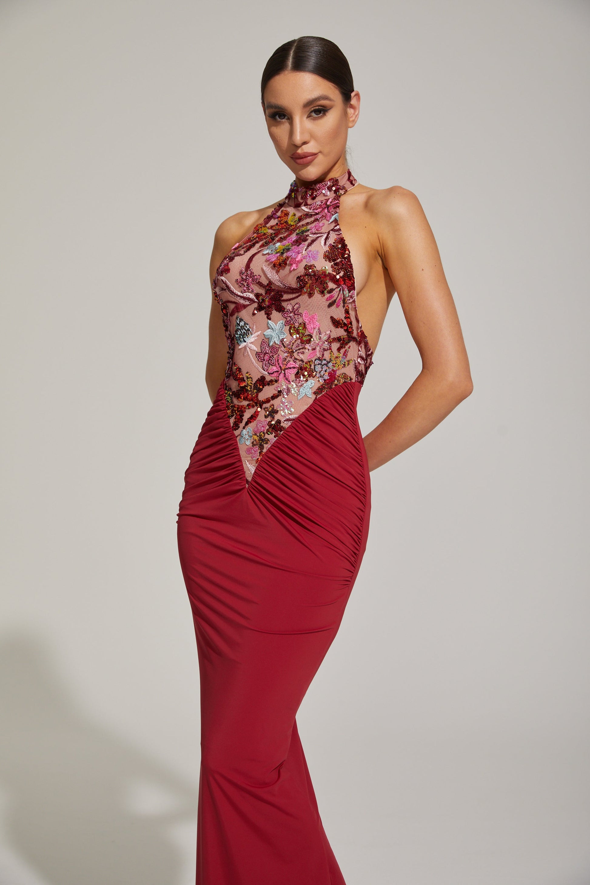 Dilara Kırmızı Büyülü Bahçe Uzun Elbise