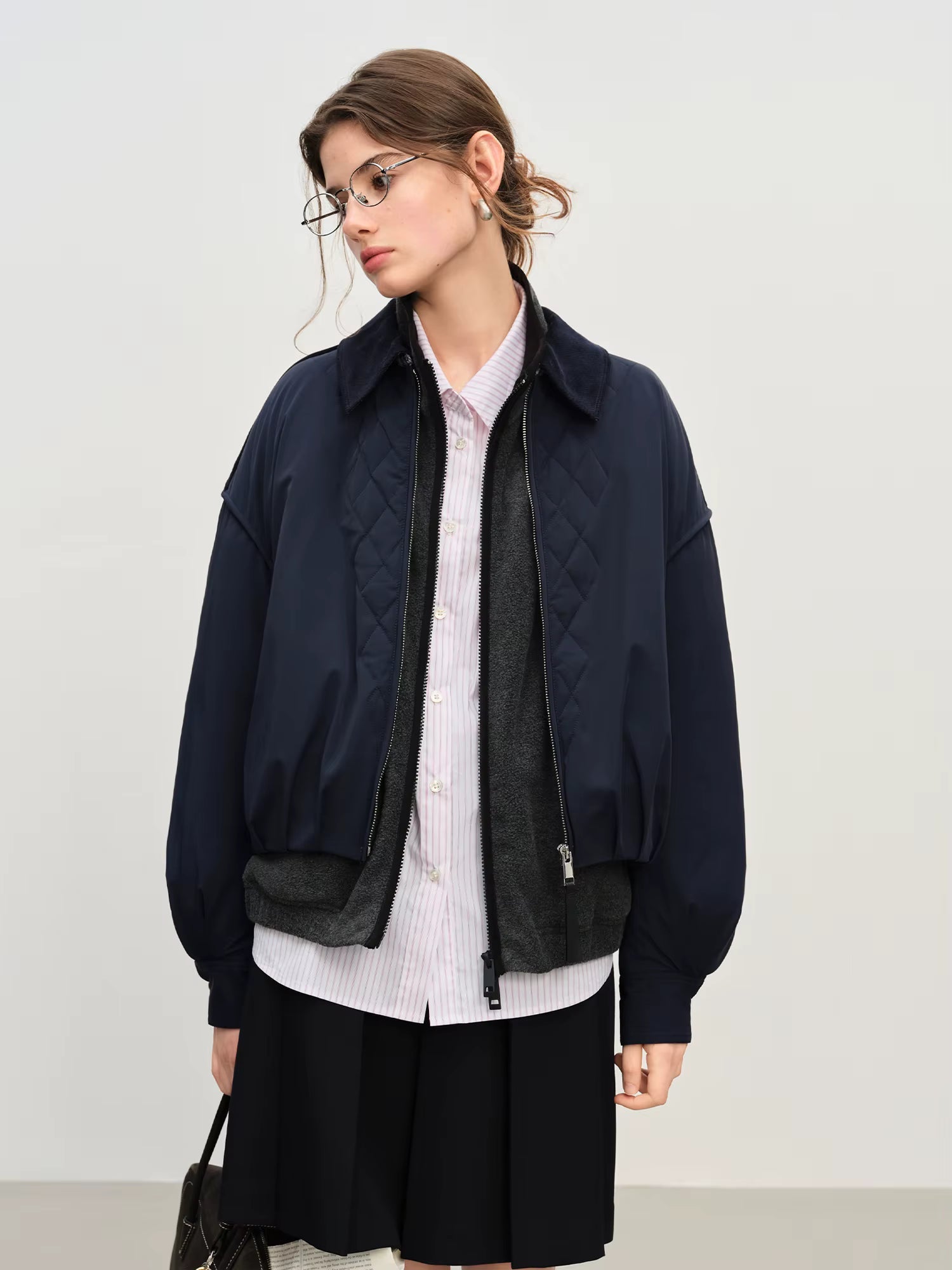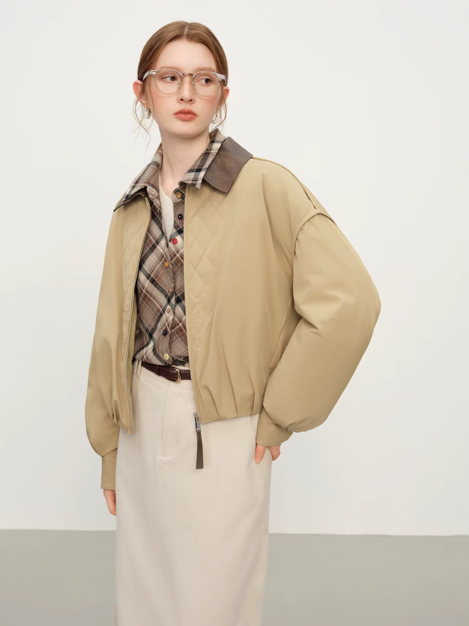 Ekose Panelli Kısa Ceket