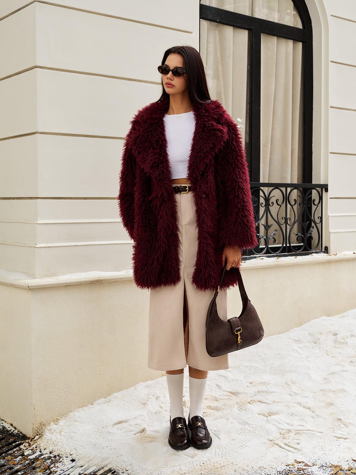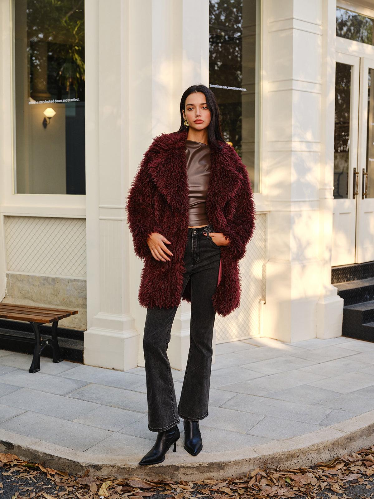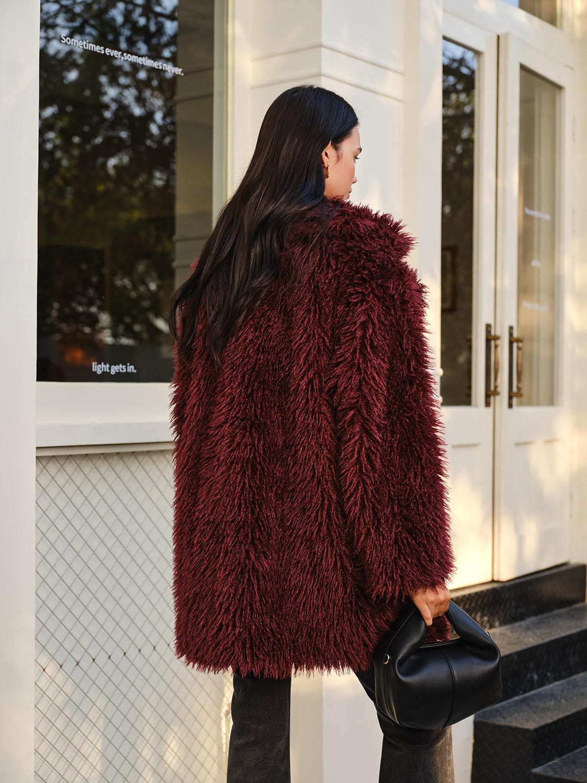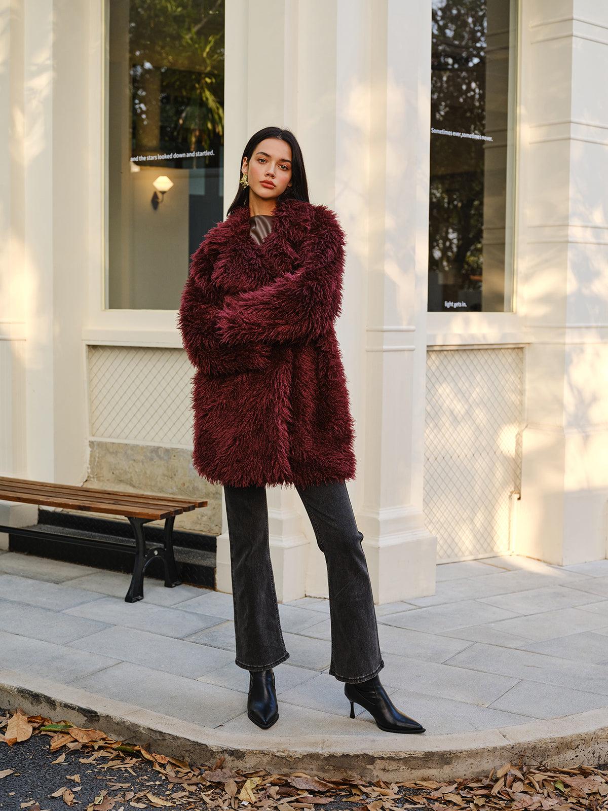 Bordo Tüylü Şık Kürk