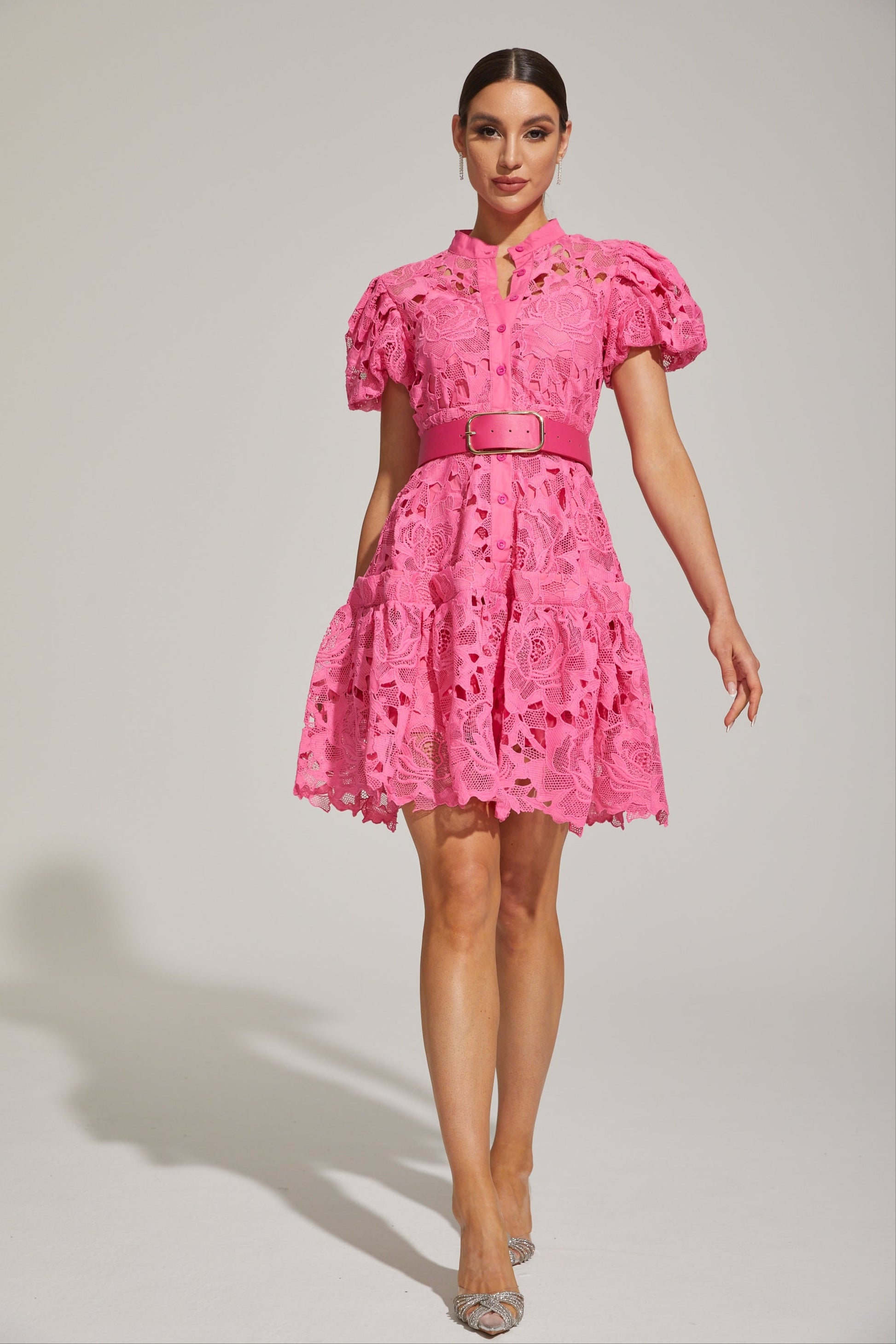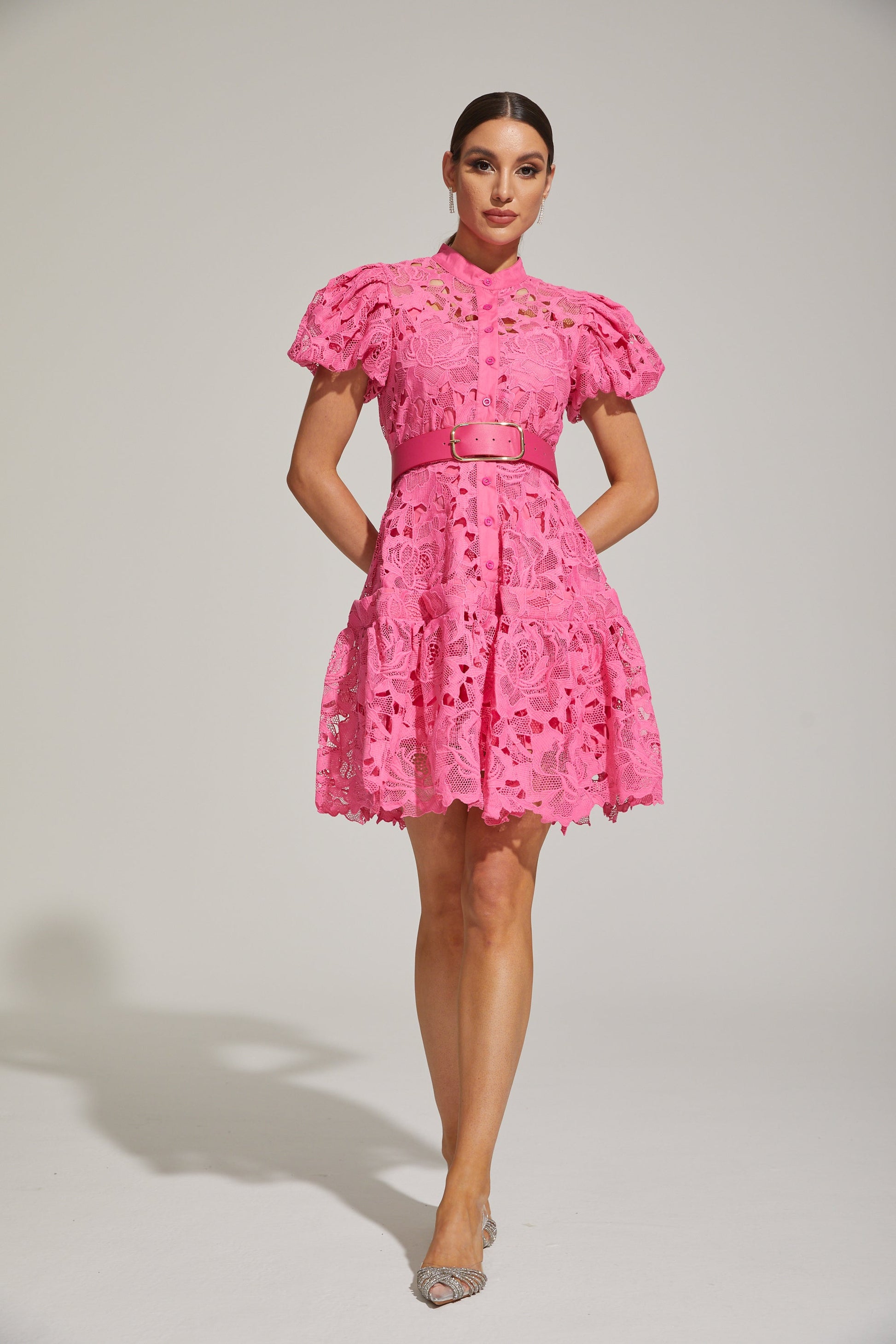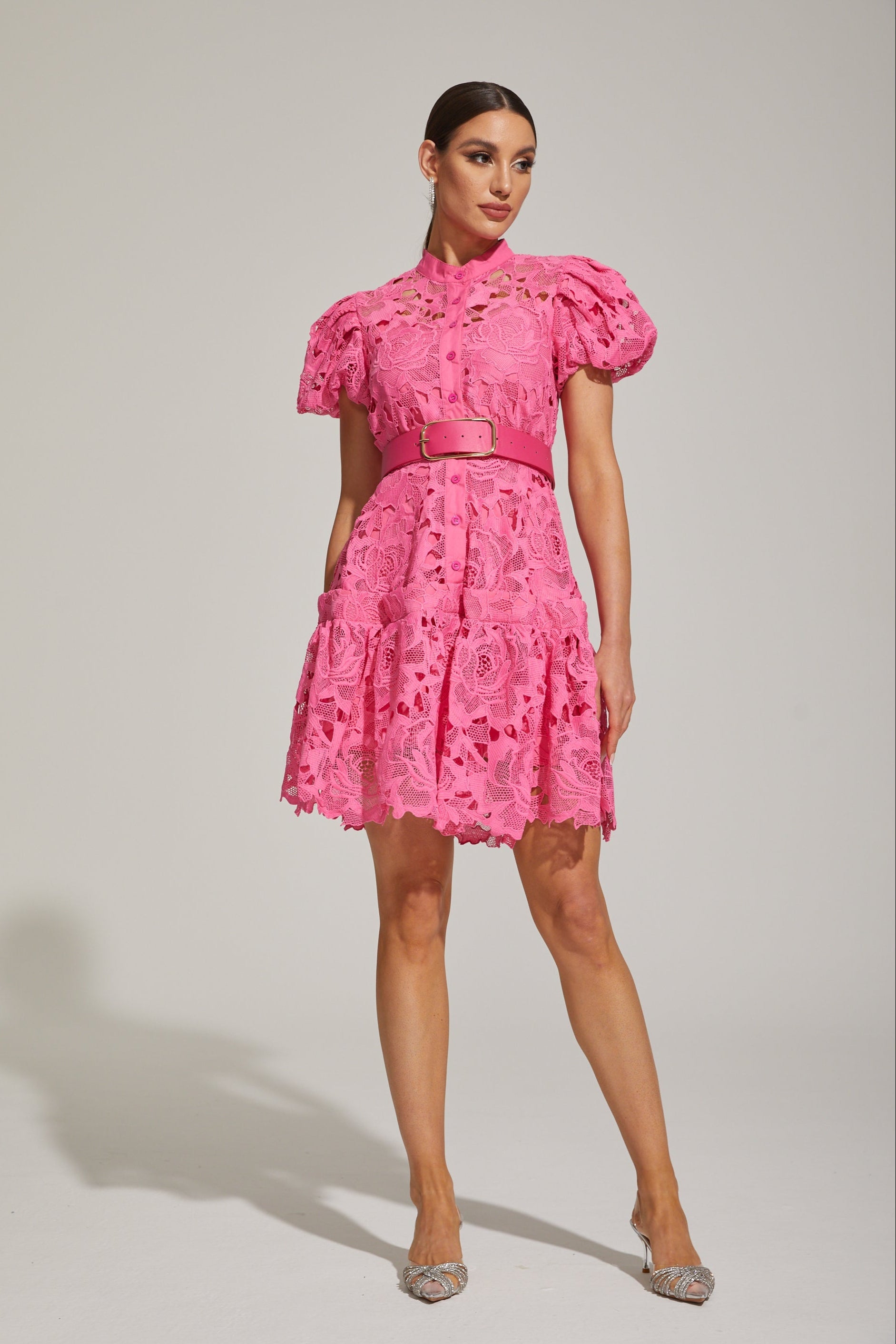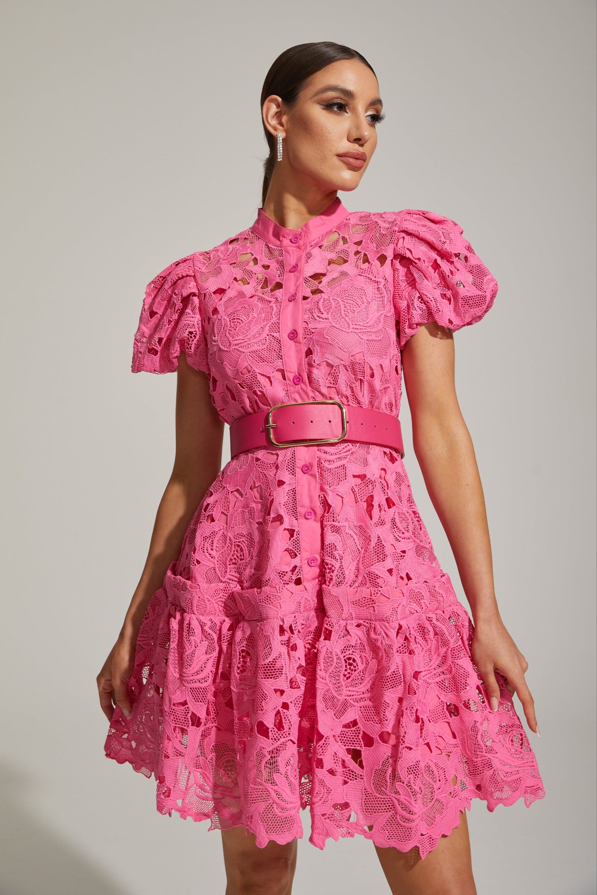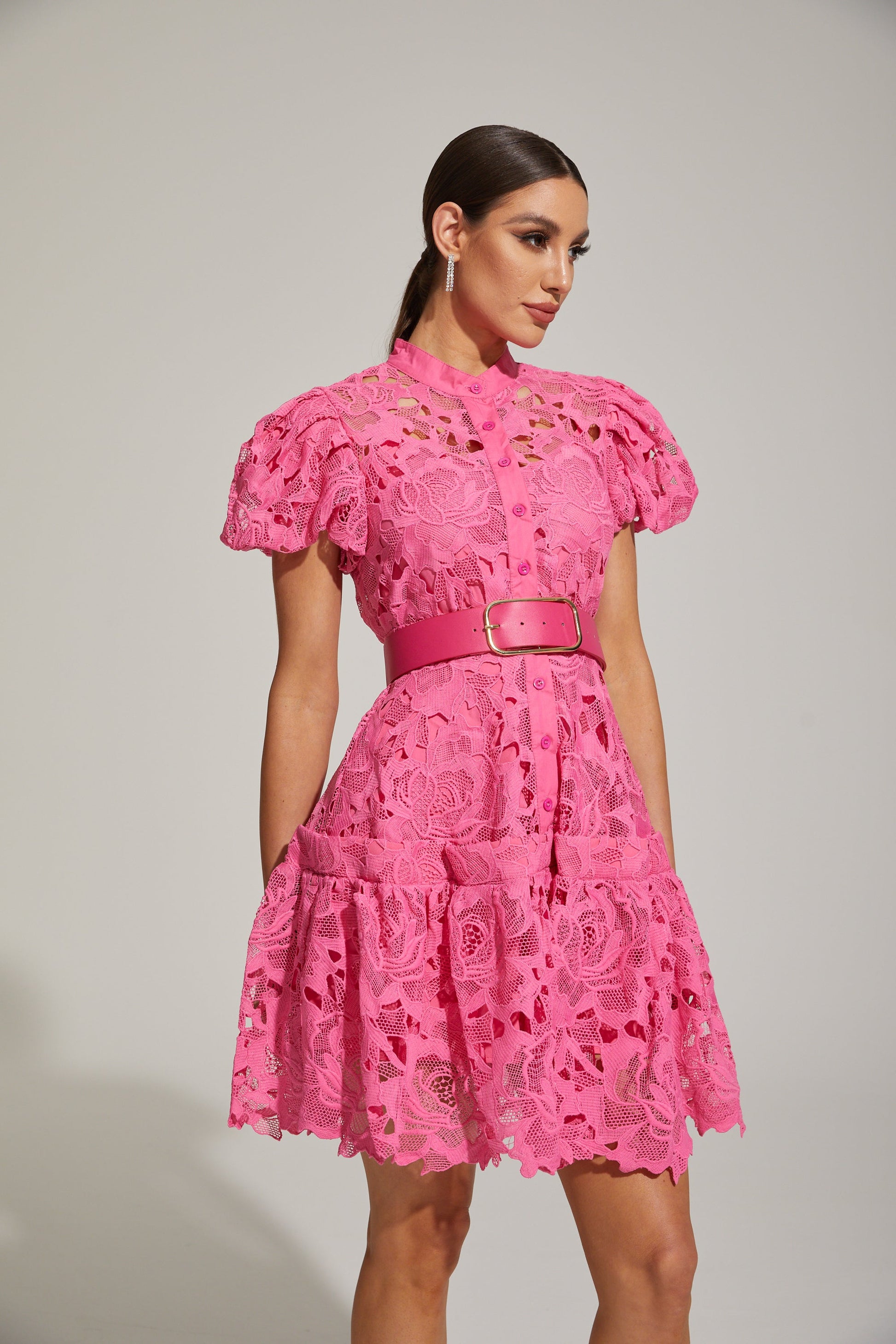 Eléonore Dantelli Kuşaklı Mini Elbise