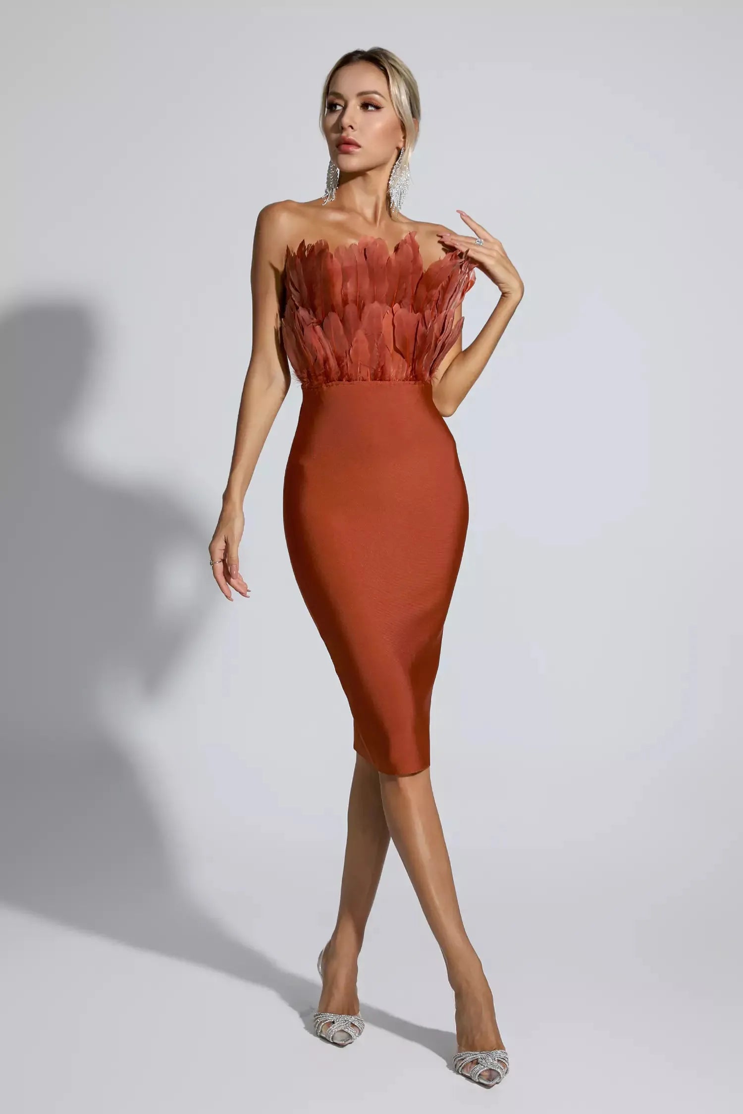 Elianna Koyu Kahverengi Tüylü Midi Elbise