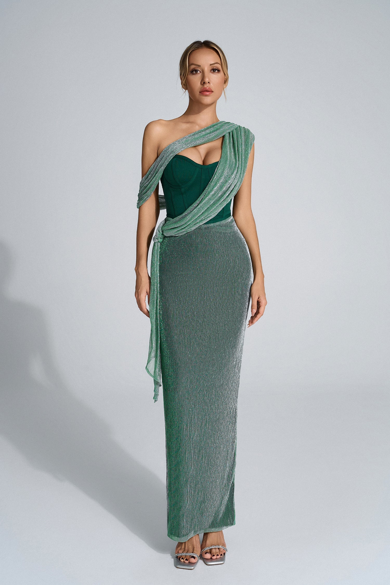 26% İndirimLeanna Yeşil Çiçek İşlemeli Uzun Elbise