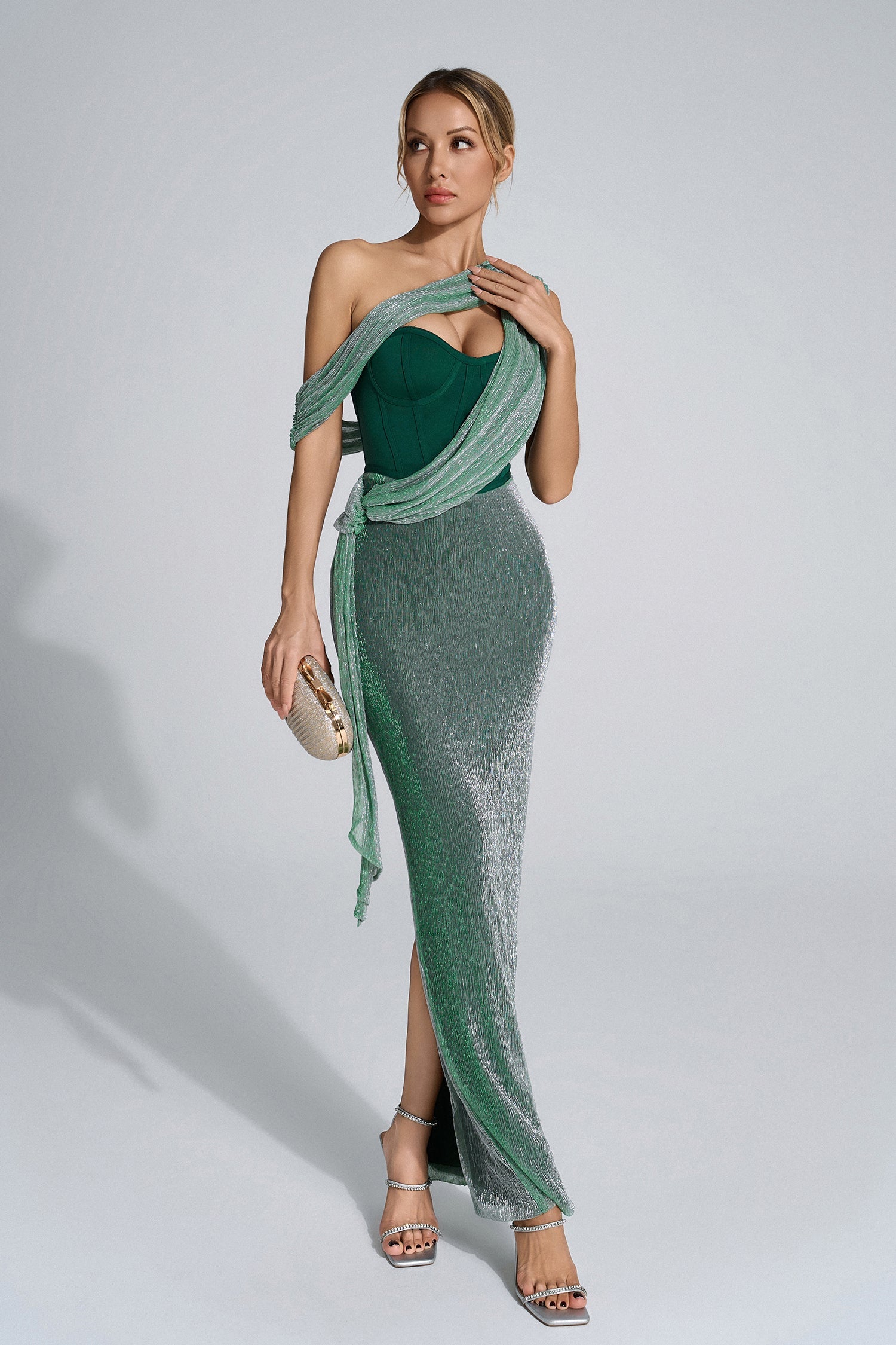 36% İndirimZümrüt Yeşili Askılı Uzun Elbise