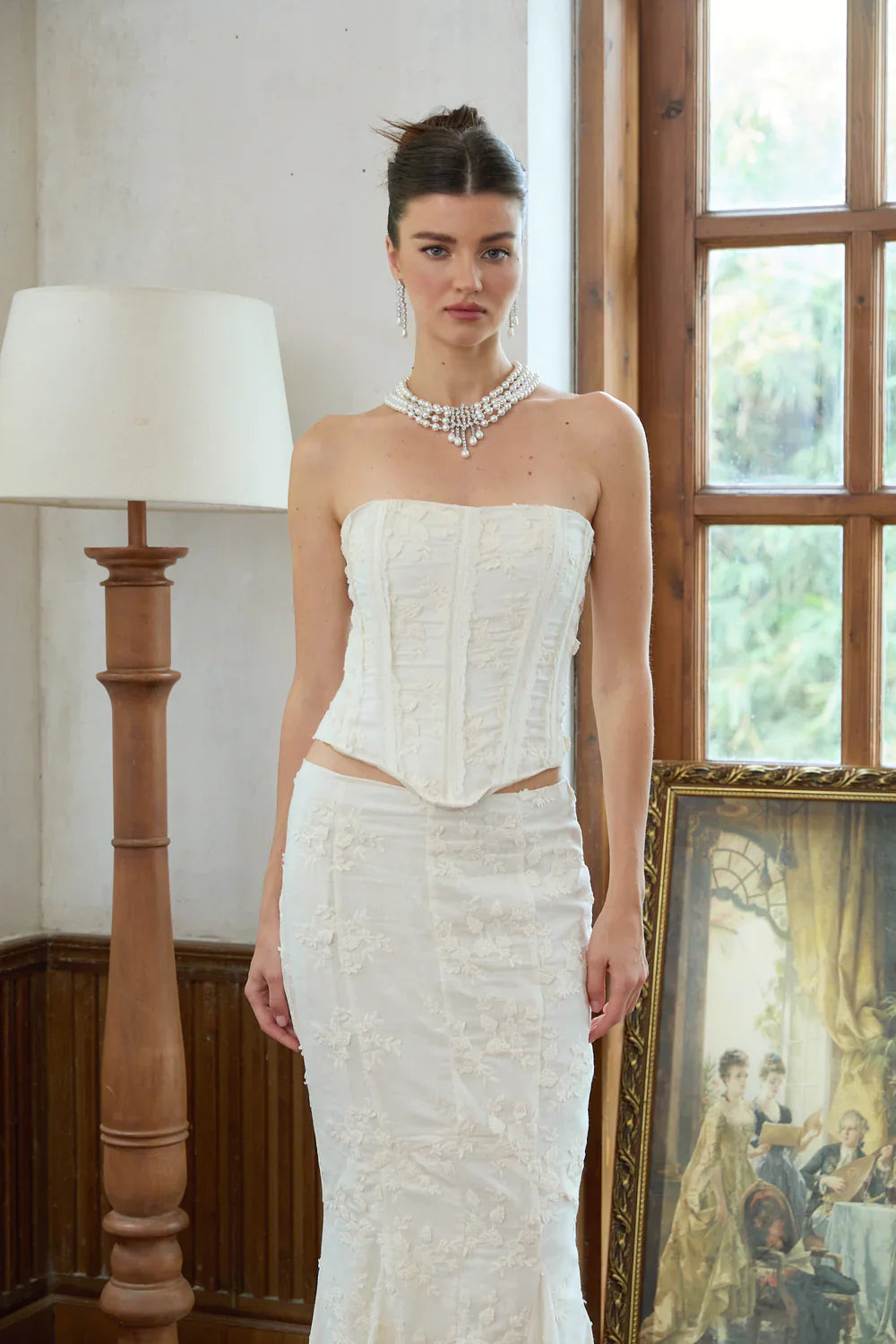 Eugenie Beyaz İşlemeli Üst Ve Etek Uyumlu Set