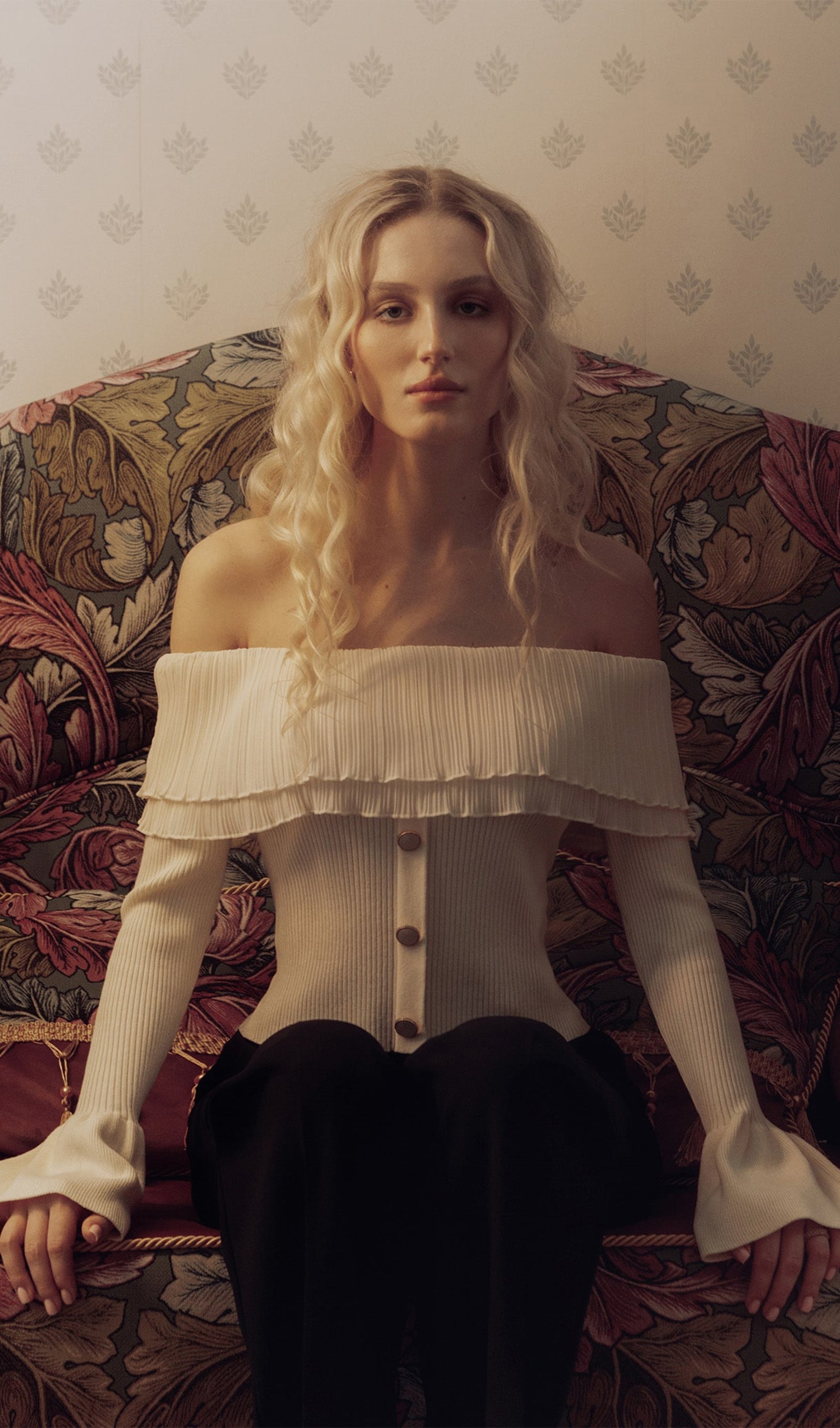 Flier Starplez Fırfır Düğme Detay Üst - Krem