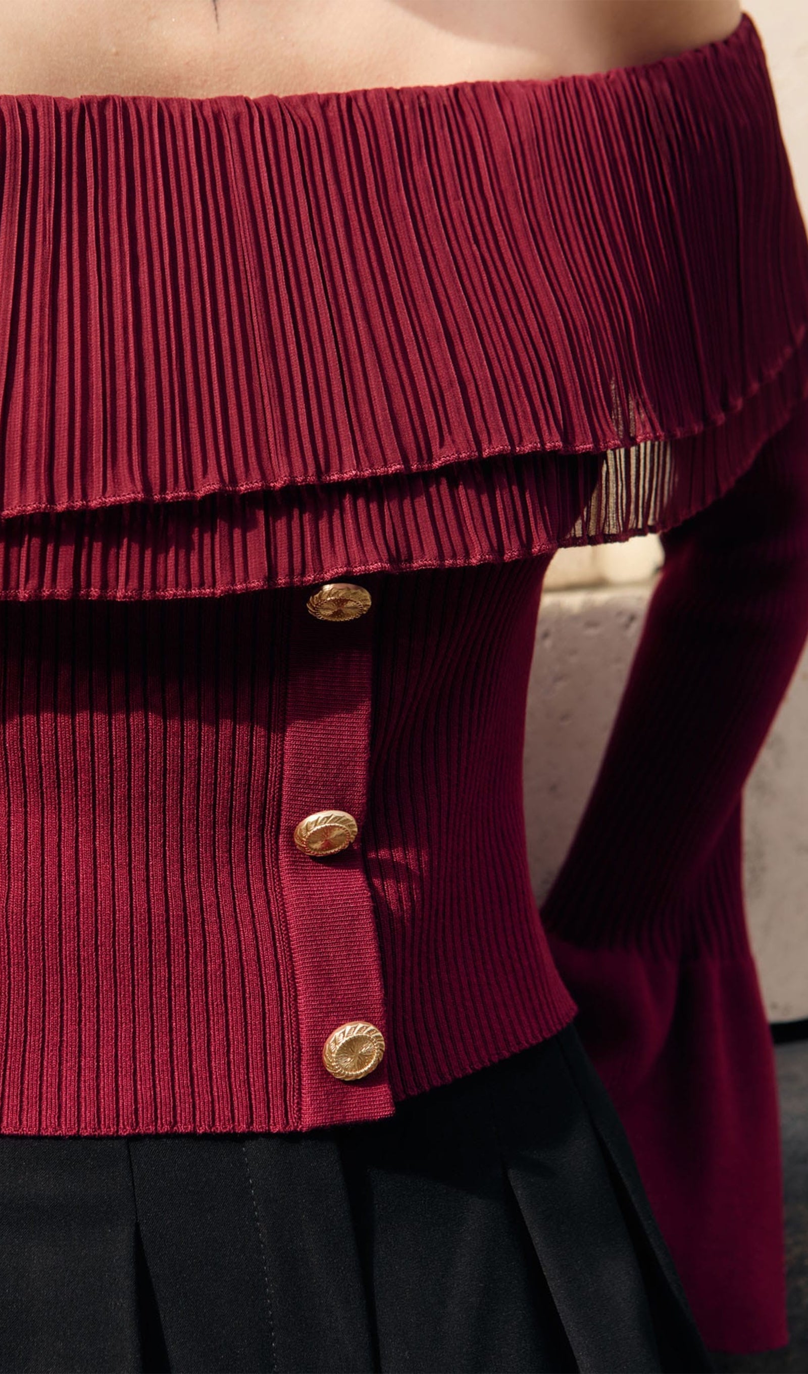 Flier Starplez Fırfır Düğme Detay Üst - Bordo