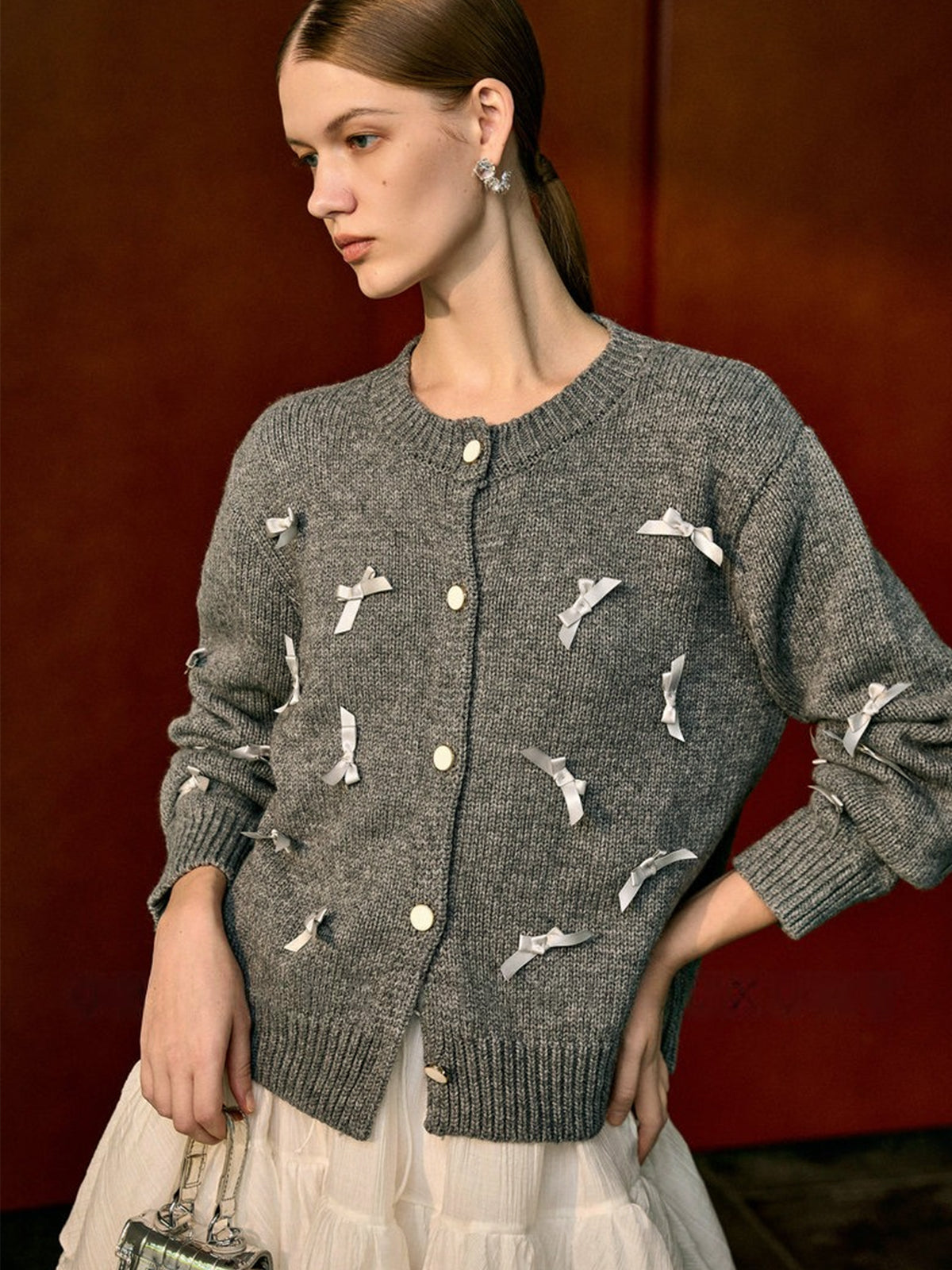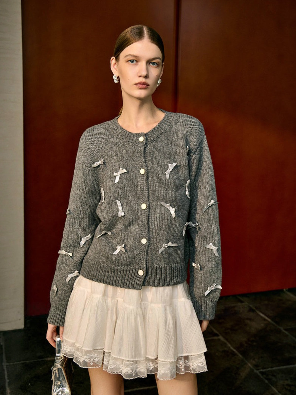 Fiyonk-Dekor Düğmeli Streç Hırka