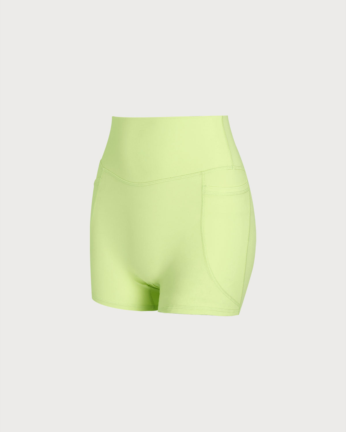 Yeşil Cepli Yüksek Bel Yoga Şortu