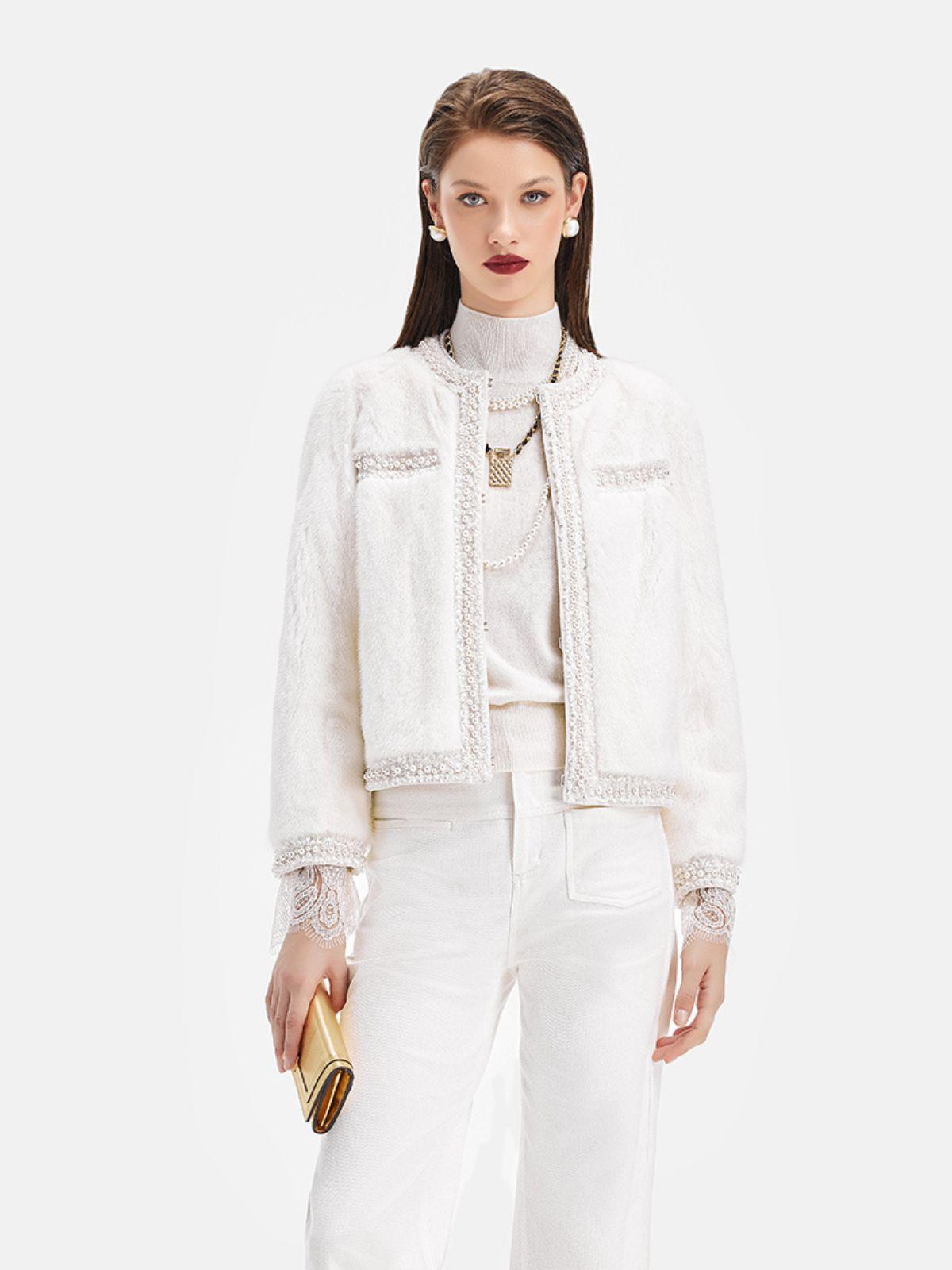 Zarif inci detayları ve modern tasarımıyla bu ceket, sofistike stilinize eşlik ediyor. Hem özel günlerde hem de günlük kombinlerinizde rahatlıkla tercih edebilirsiniz. Şıklığın ve zarafetin buluştuğu bu parça, gardırobunuzun vazgeçilmezi olacak!