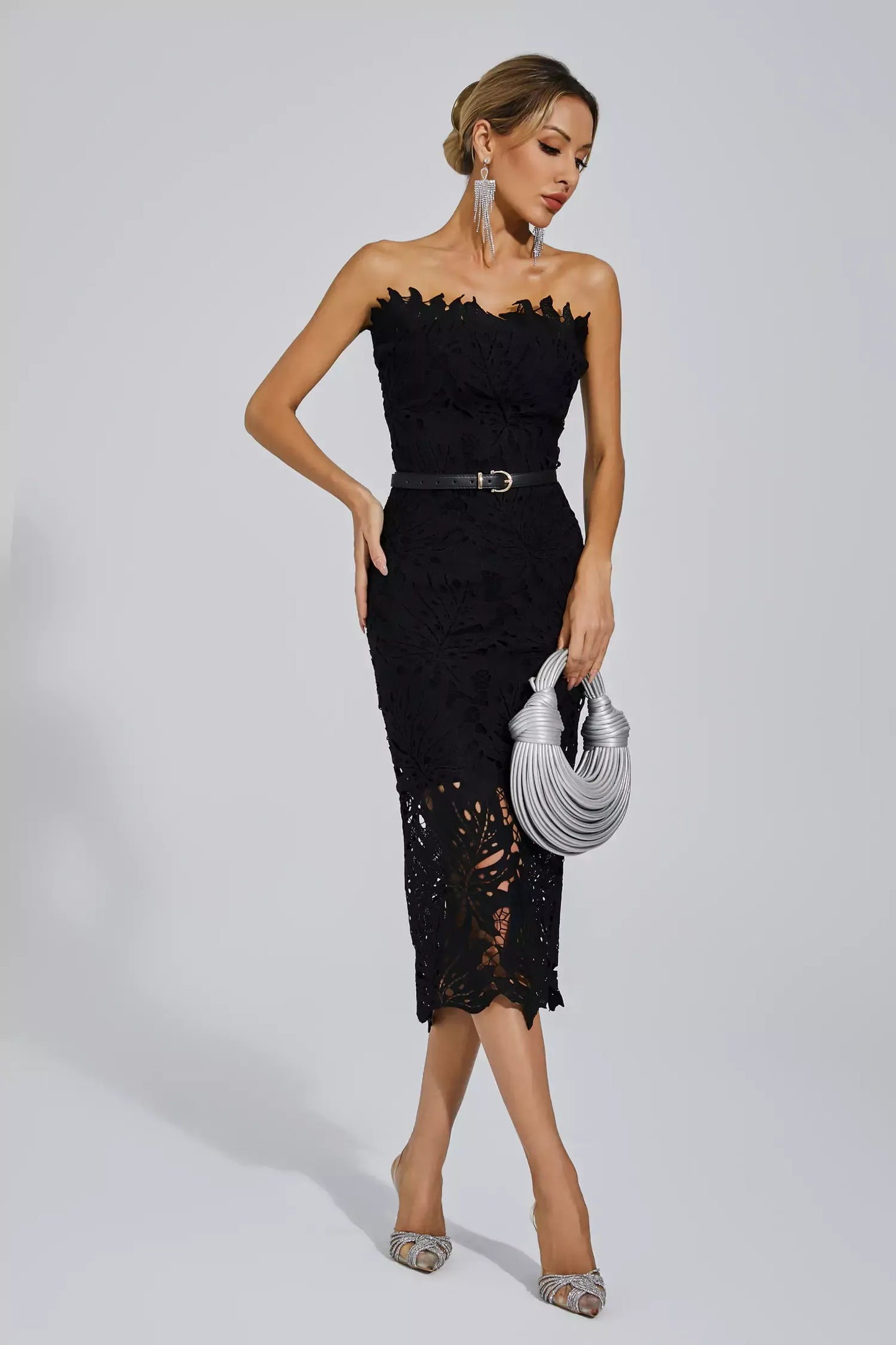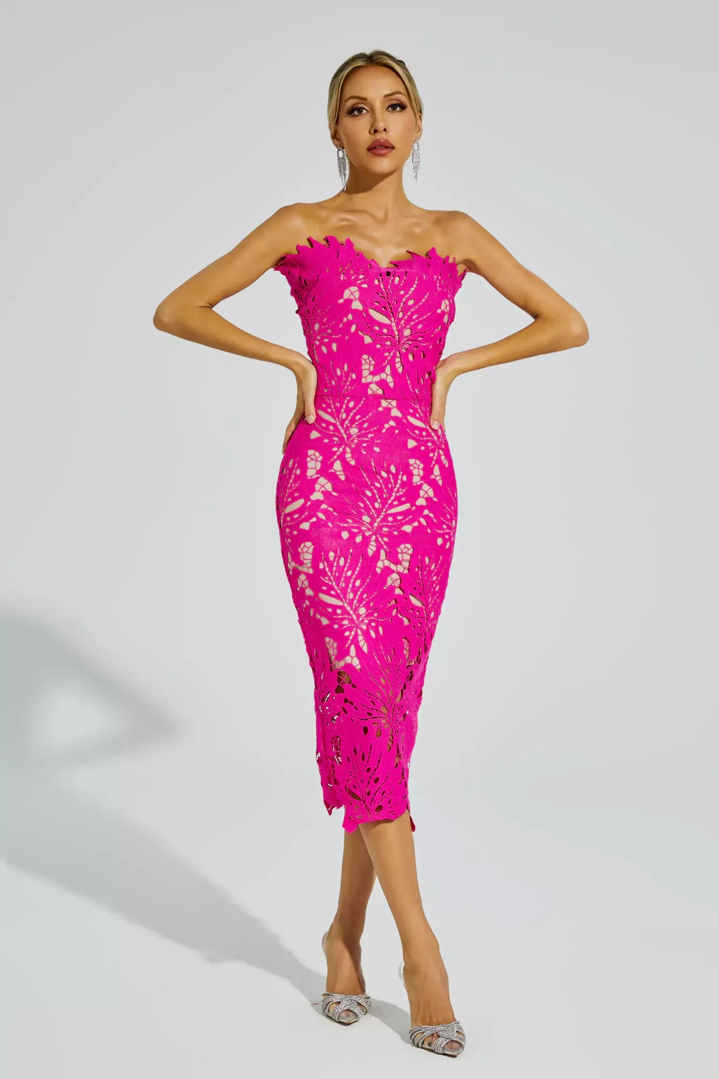 Jazlyn Pembe Çiçekli Dantel Midi Elbise