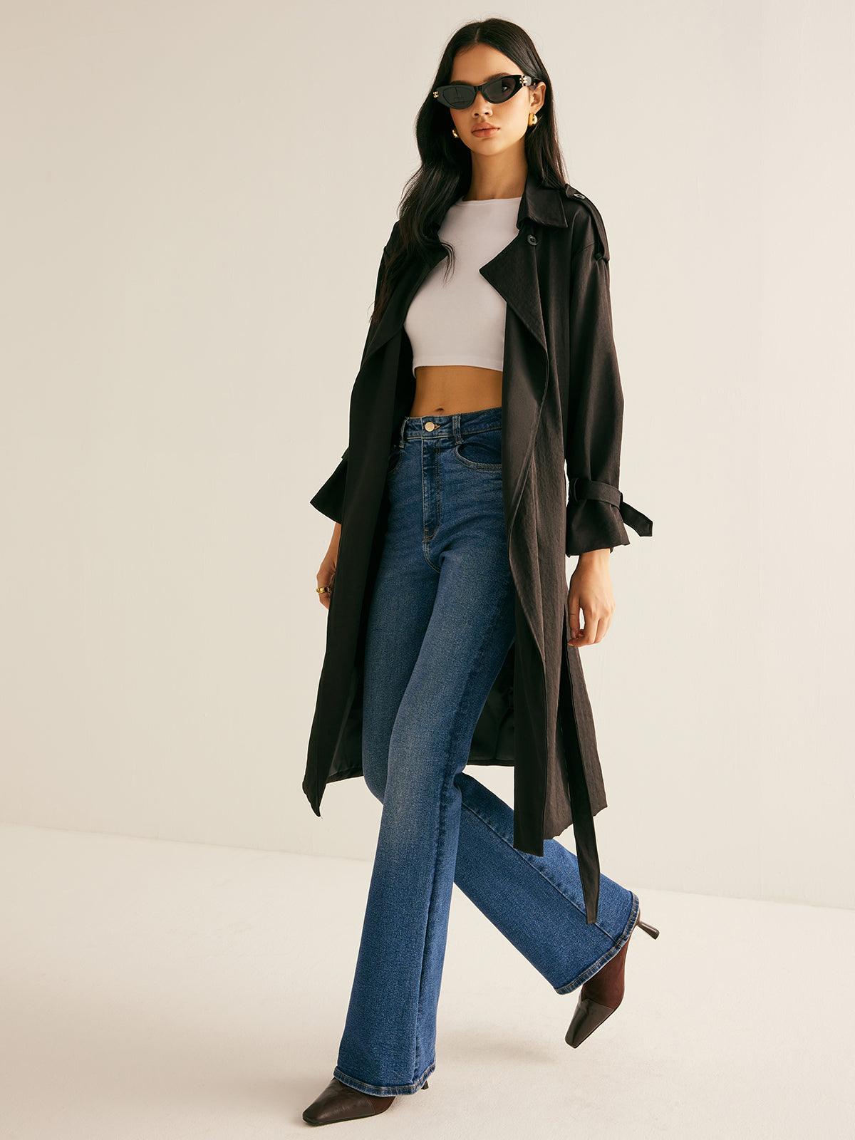 Jet Black Uzun Trençkot, minimal tasarımı ve modern kesimiyle zarafeti ve fonksiyonelliği bir araya getiriyor. Her mevsimde kullanıma uygun yapısıyla günlük şıklığınızı tamamlayan bu parça, her ortamda dikkat çekici bir görünüm sunar. Geniş yakası, rahat kesimi ve bağlama kemeriyle hem konfor hem de şıklık sağlar.