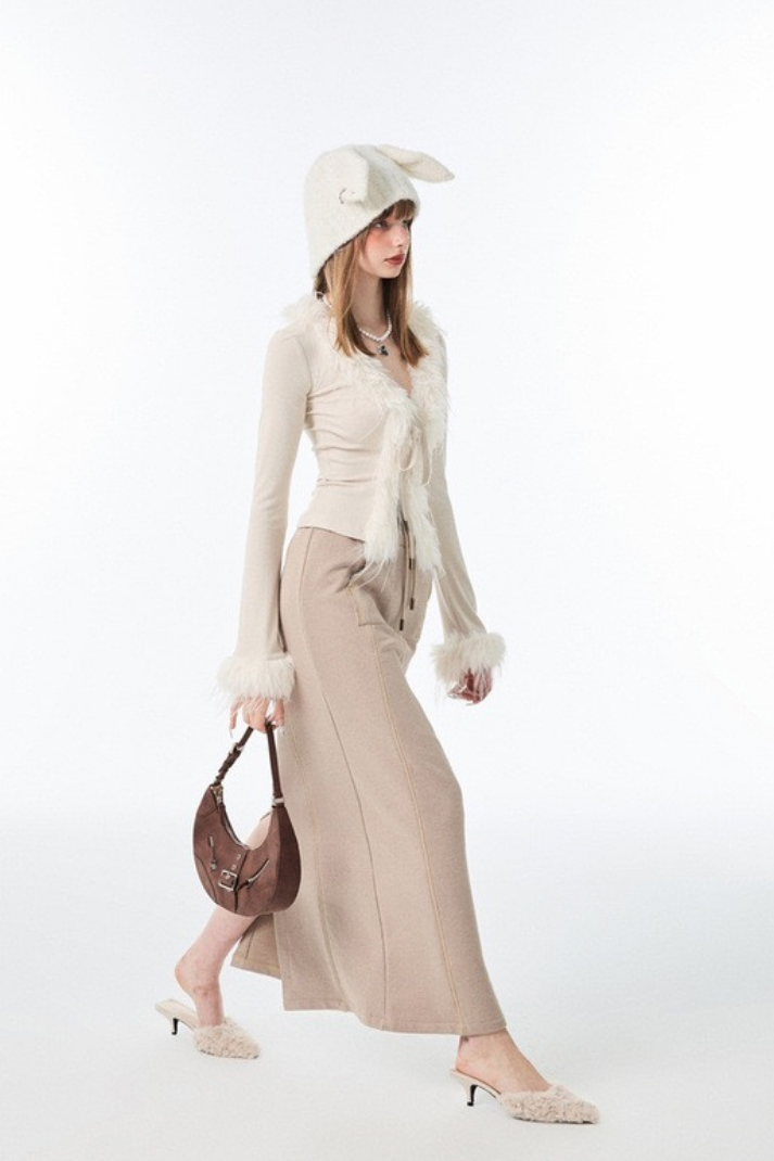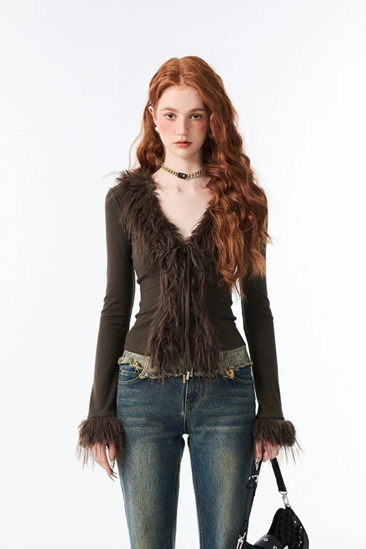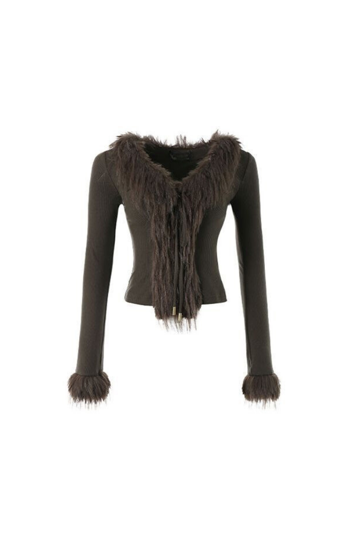 -Stil: Peluş detaylı bağcıklı hırka