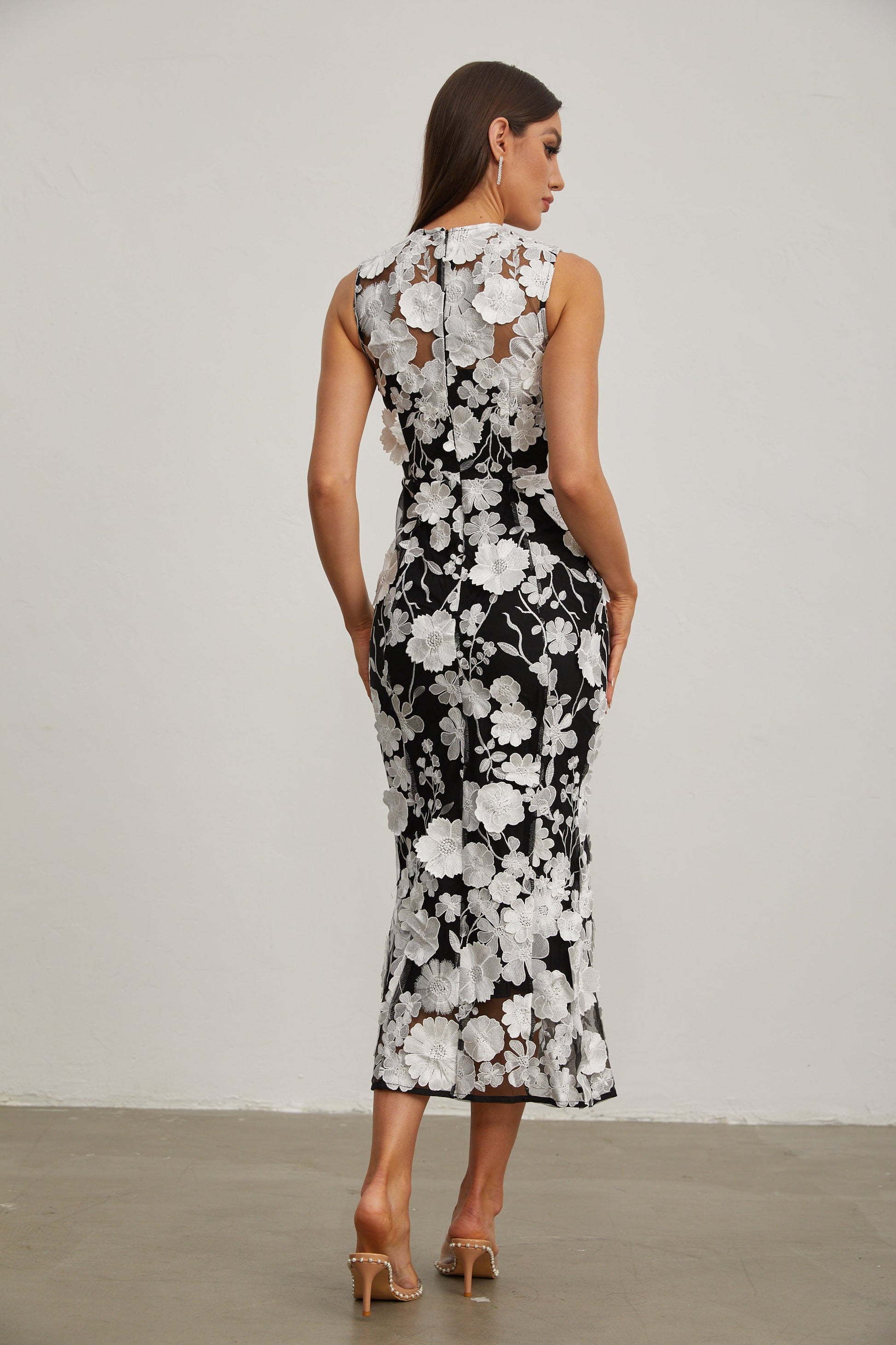Johanna Siyah Çiçekli Dantel Midi Elbise
