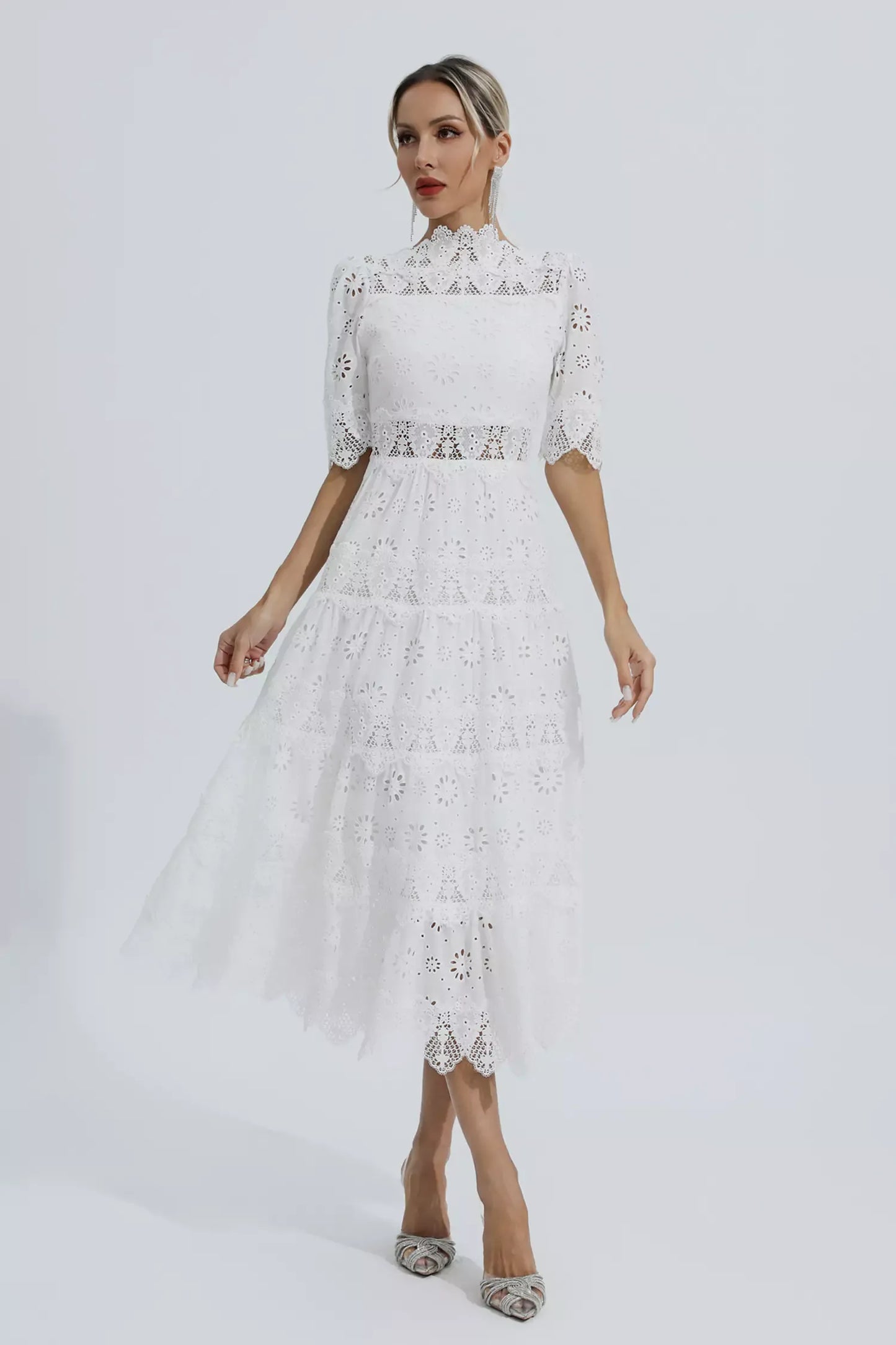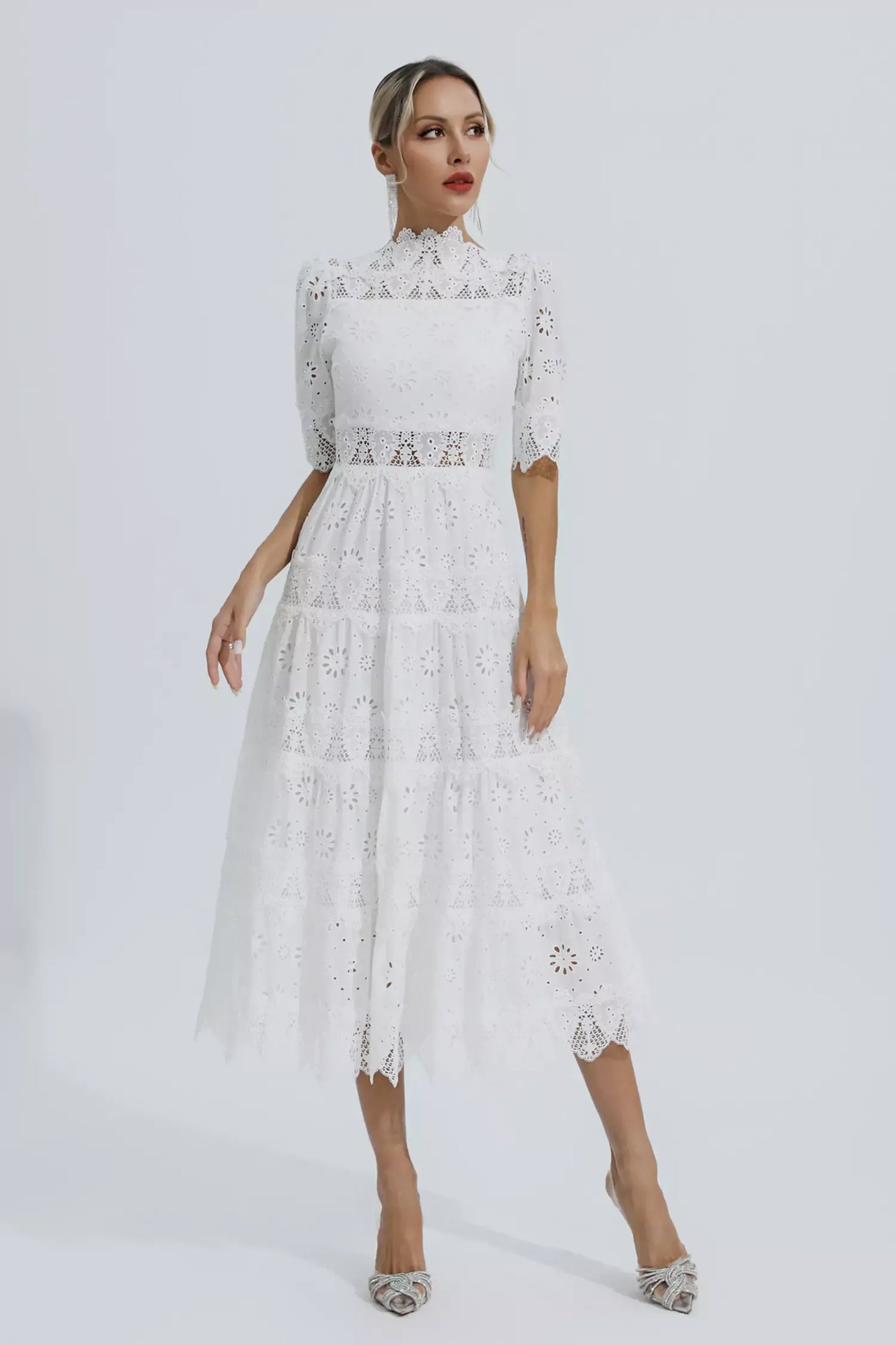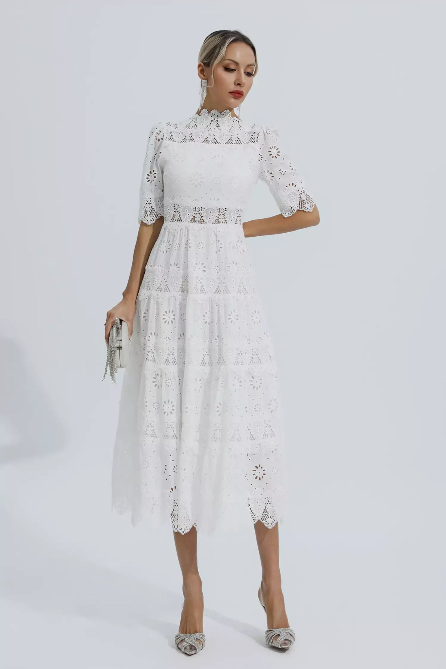 Kenna Beyaz Hollow Yarım Kollu Midi Elbise