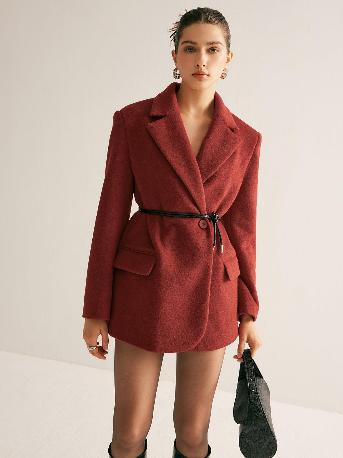 Kiremit Rengi Kuşak Detaylı Yün Ceket