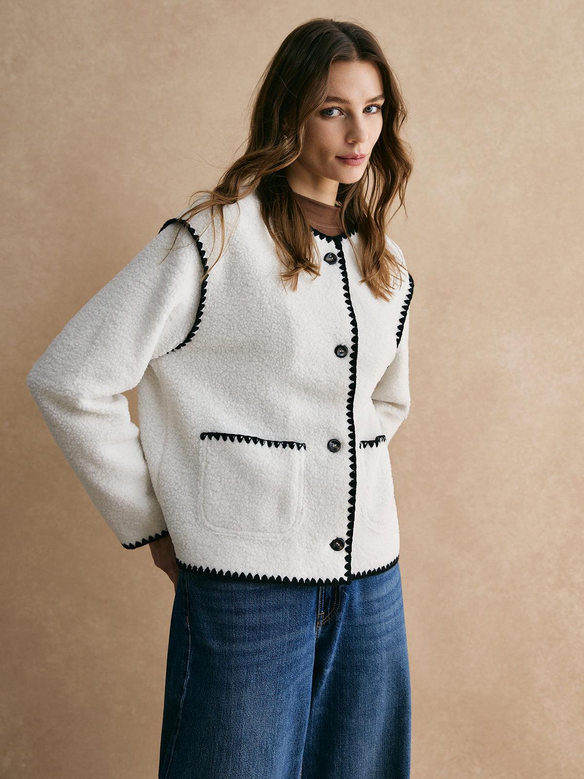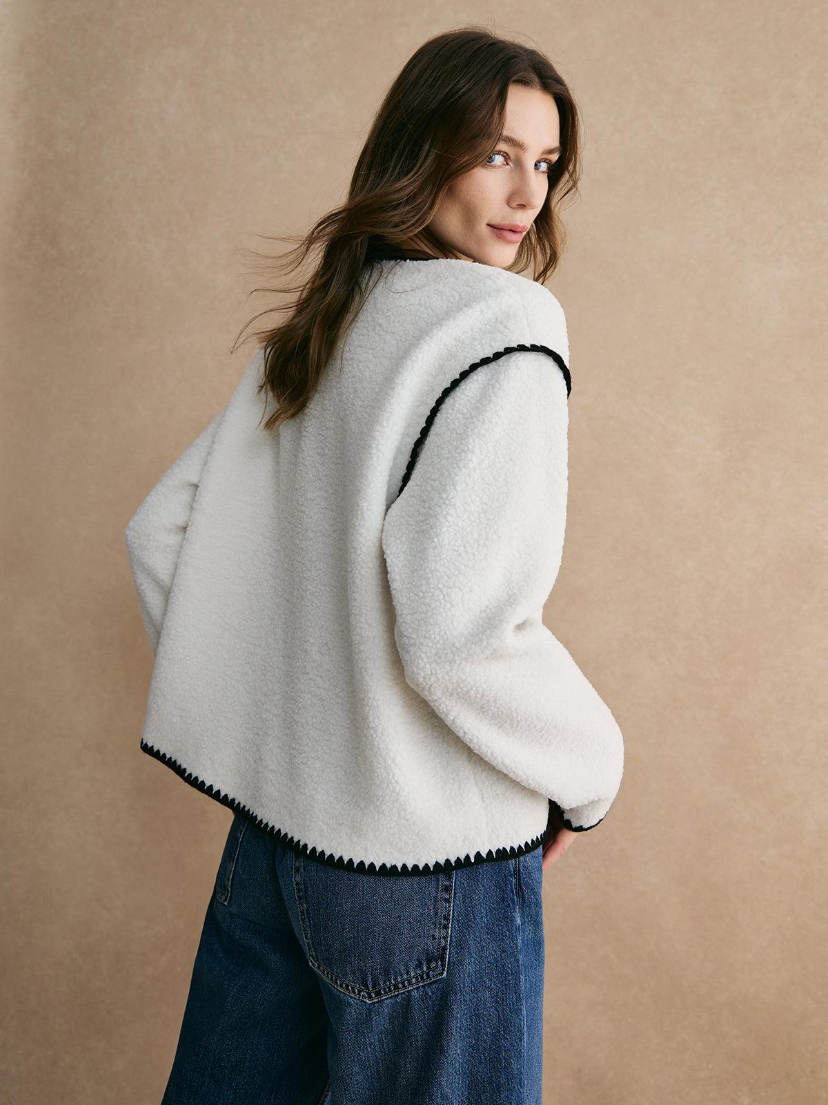 Lina Beyaz Kontrast Dikişli Ceket, şıklığı ve konforu bir arada sunuyor. Siyah dikiş detaylarıyla modern bir dokunuş kazanan bu ceket, her ortamda fark yaratmanızı sağlar. Hem casual hem de zarif kombinlerinize mükemmel uyum sağlar!