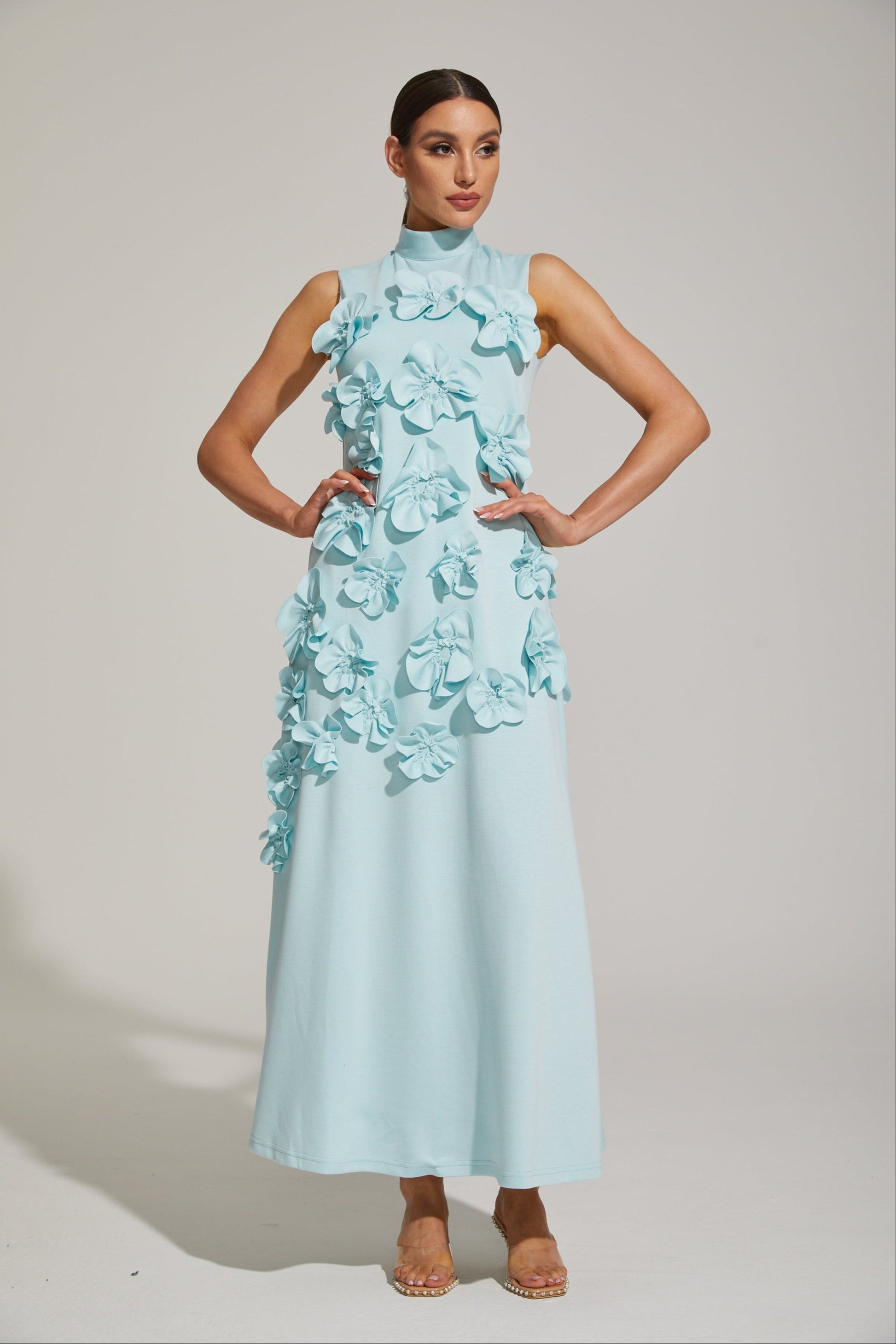 26% İndirimLeanna Yeşil Çiçek İşlemeli Uzun Elbise