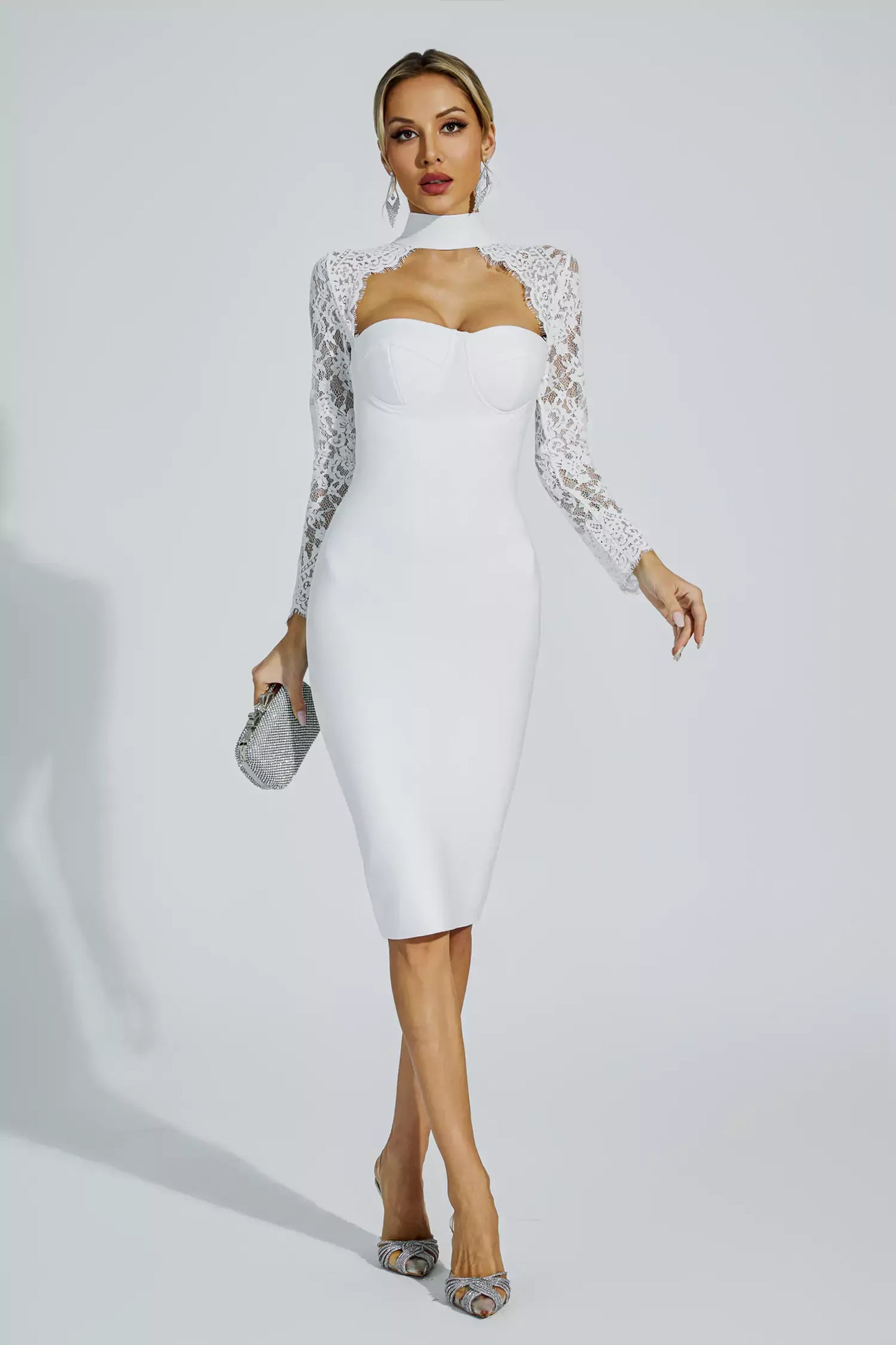 Liv Beyaz Dantel Kollu Bandaj Midi Elbise