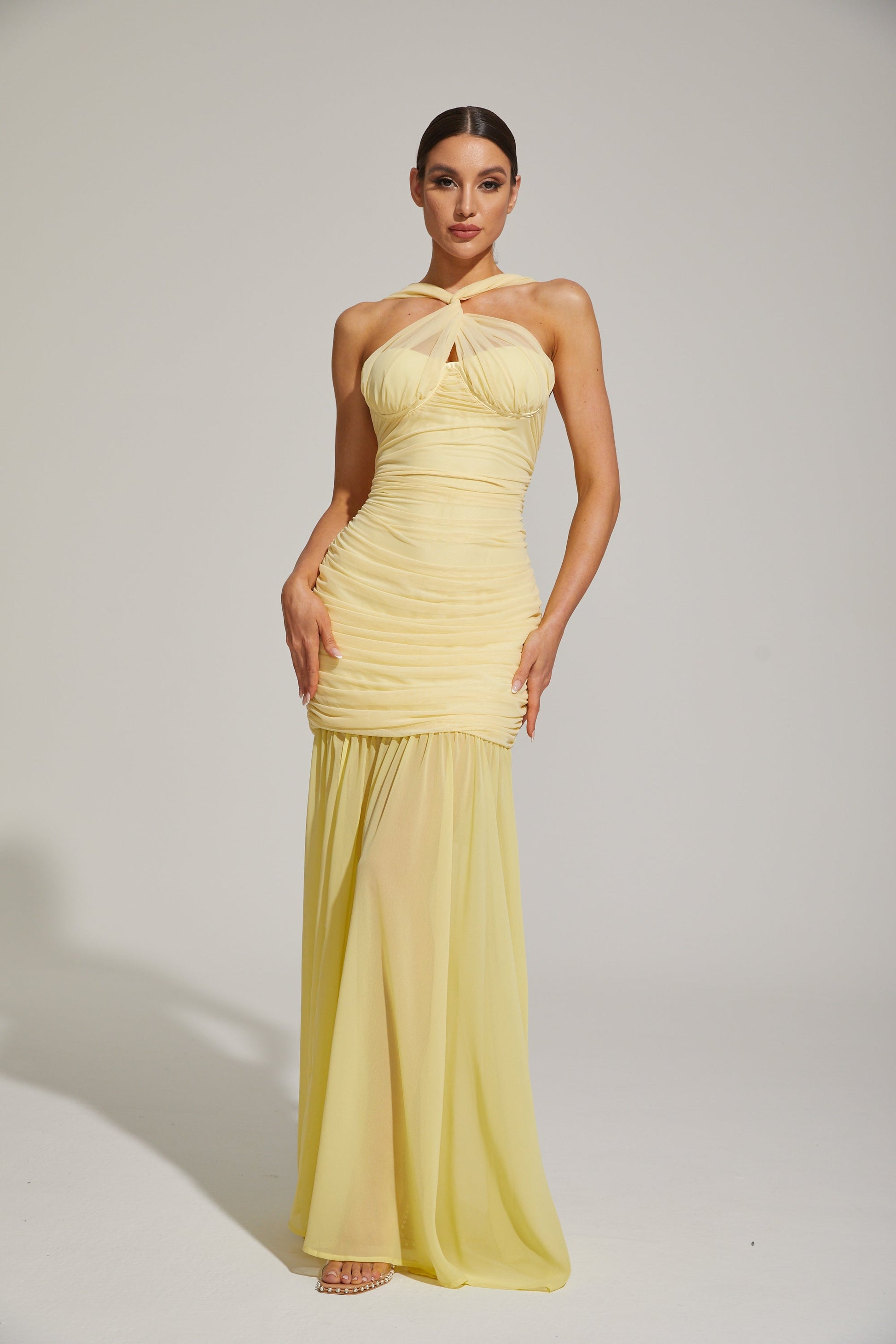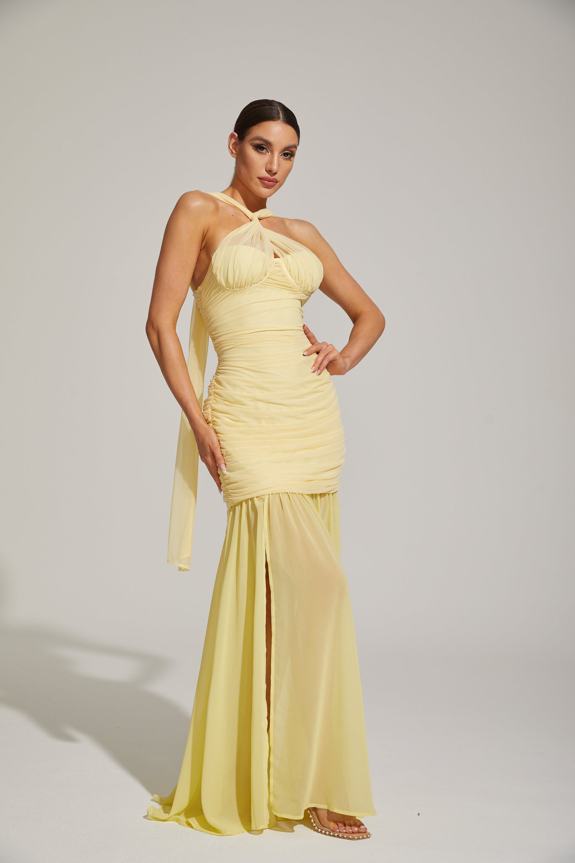 Lucienne Limonata Boyundan Bağlamalı Deniz Kızı Maxi Elbise