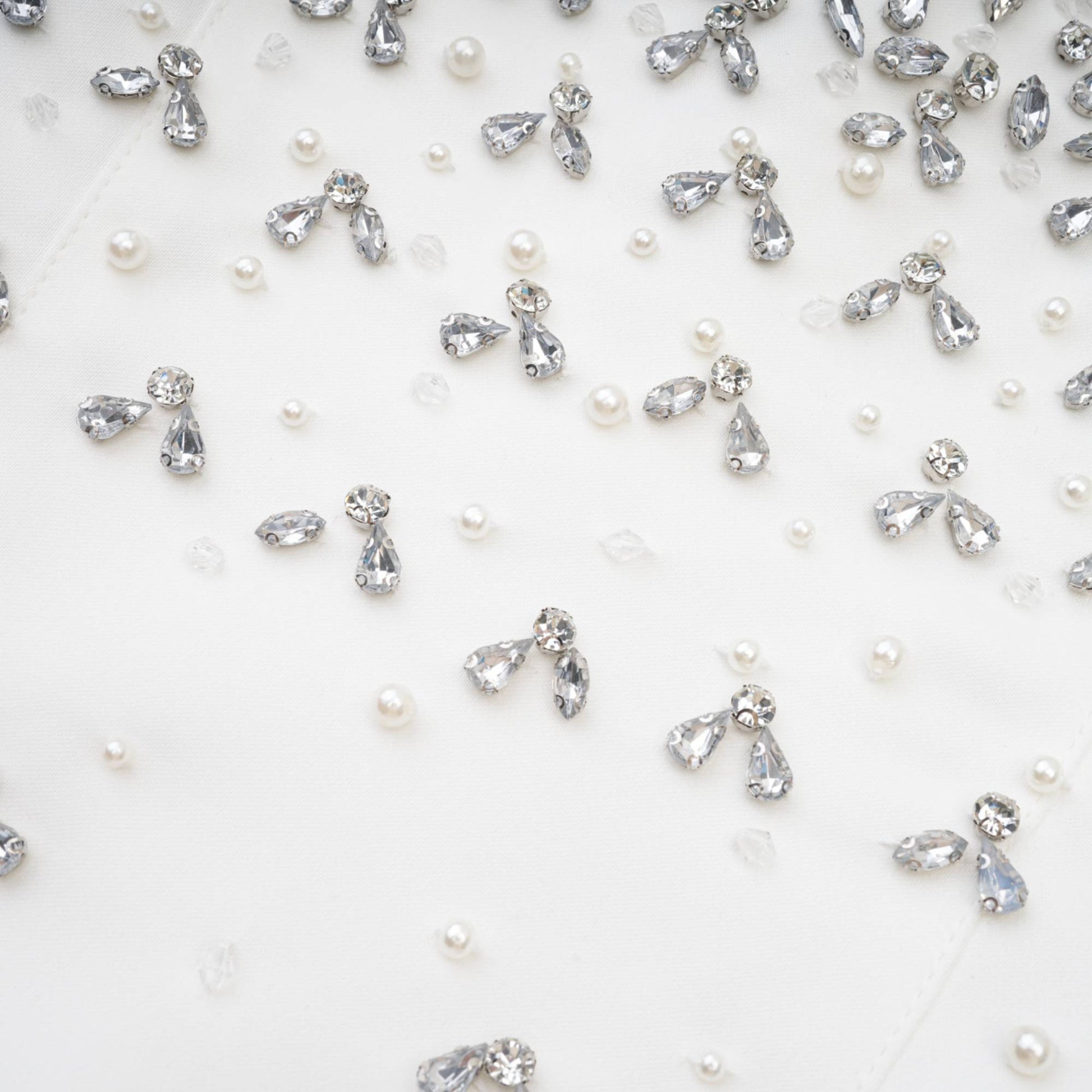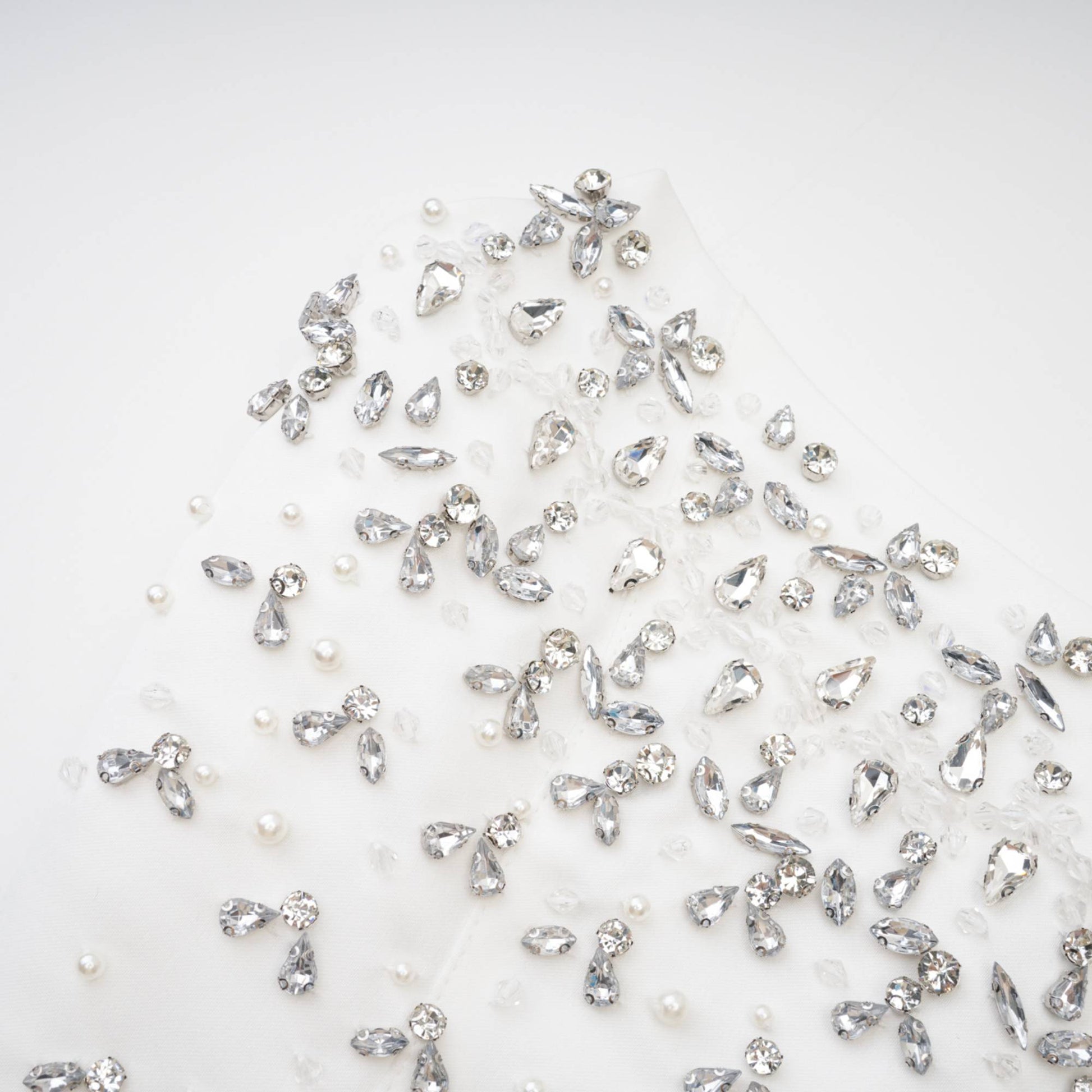 • ÖNEMLİ NOT: Melisande elbisesini sipariş ederek, tüm inci ve kristallerin el yapımı olduğunu kabul ediyorsunuz. İnci ve kristallerin çok küçük bir kısmının dökülmesi ve kırılması normal bir durumdur. Hatta üst düzey veya lüks markalar bile bunu yaşar.