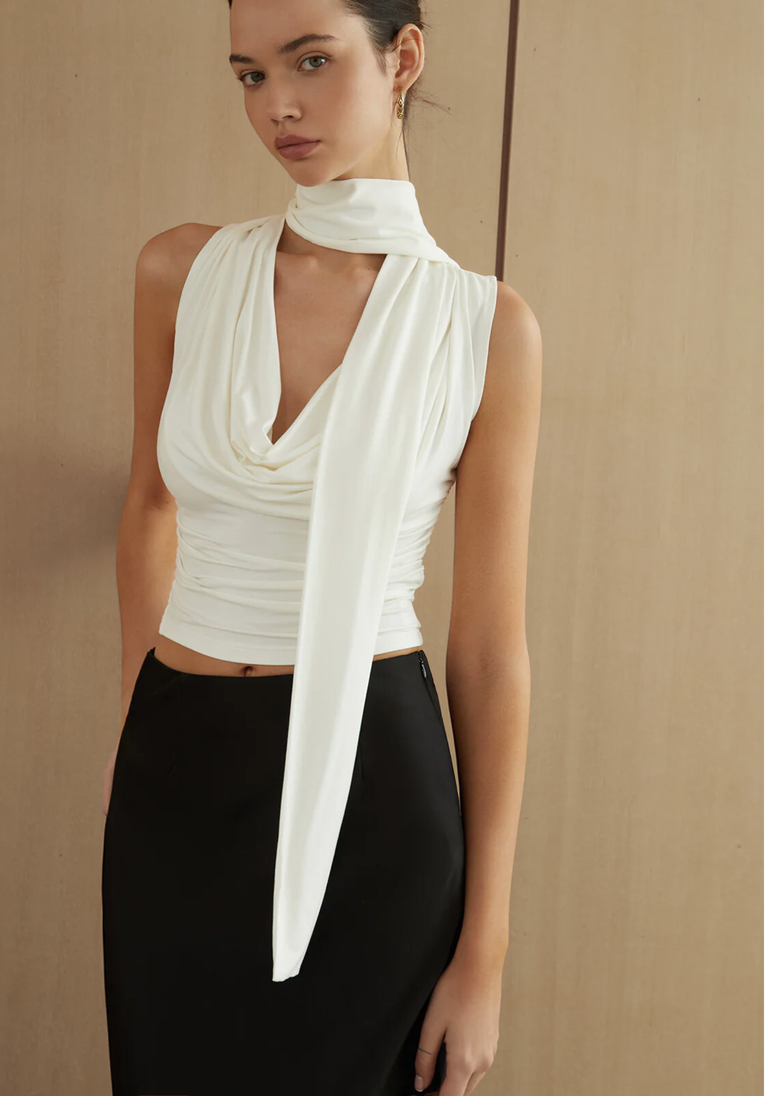 43% İndirimCassidy Siyah Omuz Açık Drape Tulum
