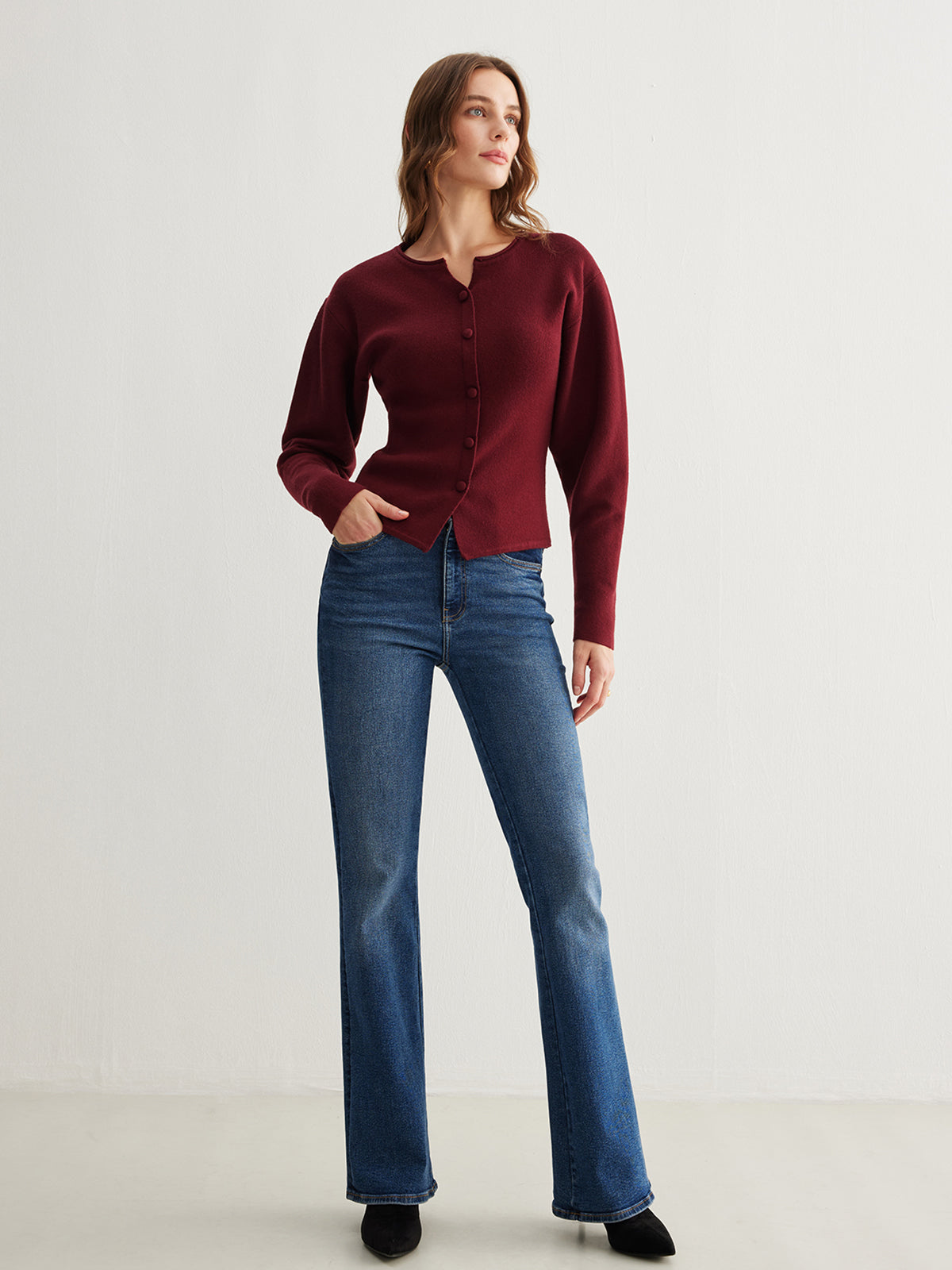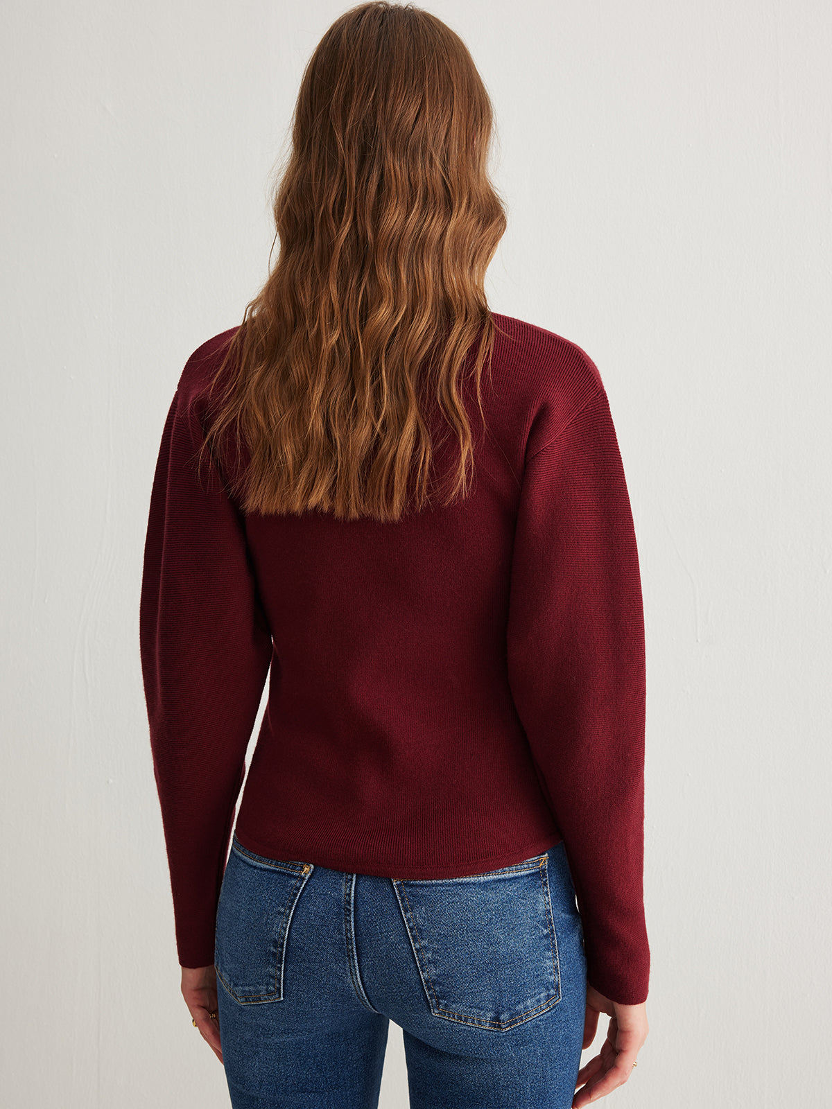 Nervürlü Düğmeli Yırtmaçlı Kazak