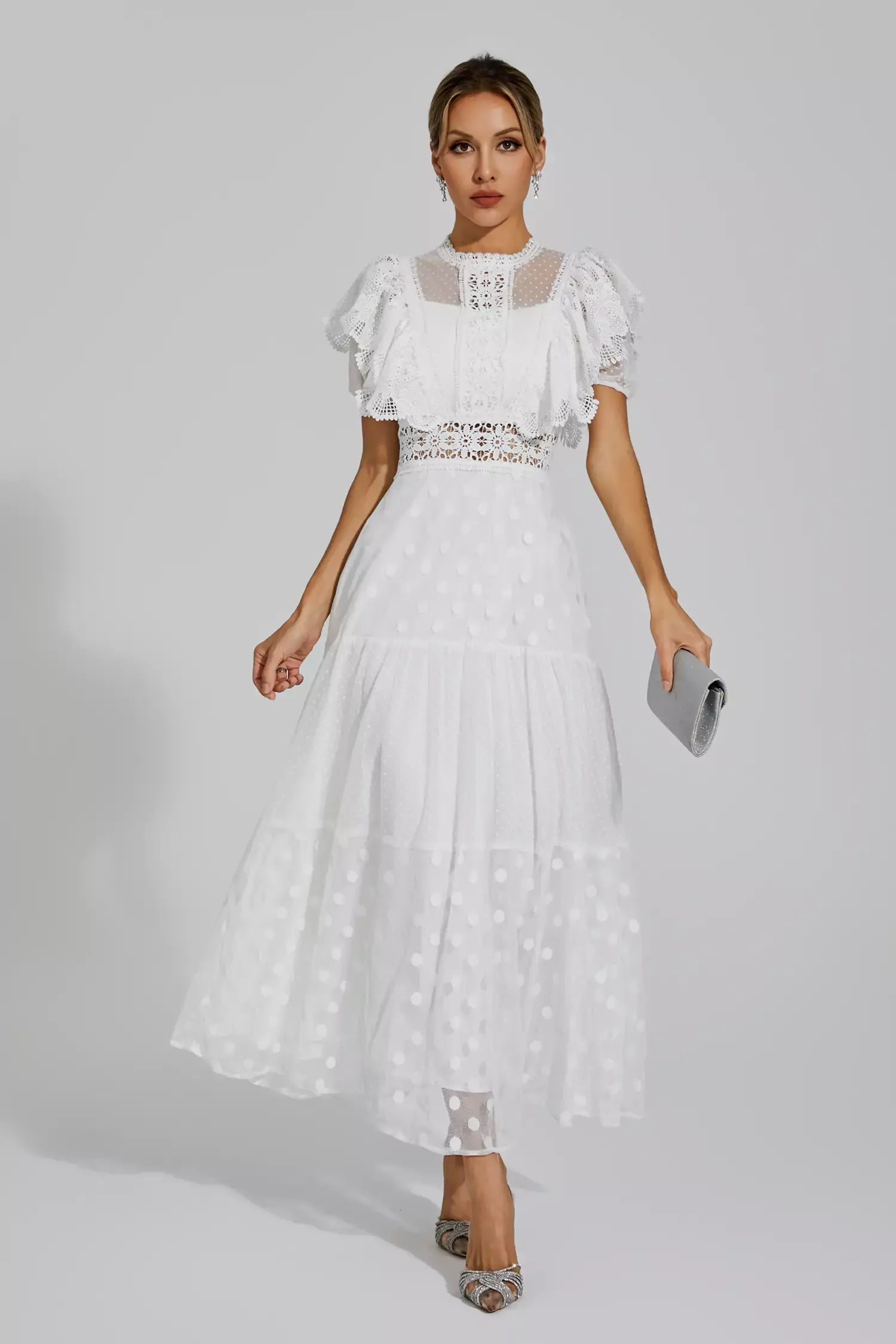 Noor Beyaz Polka Dot Uzun Elbise