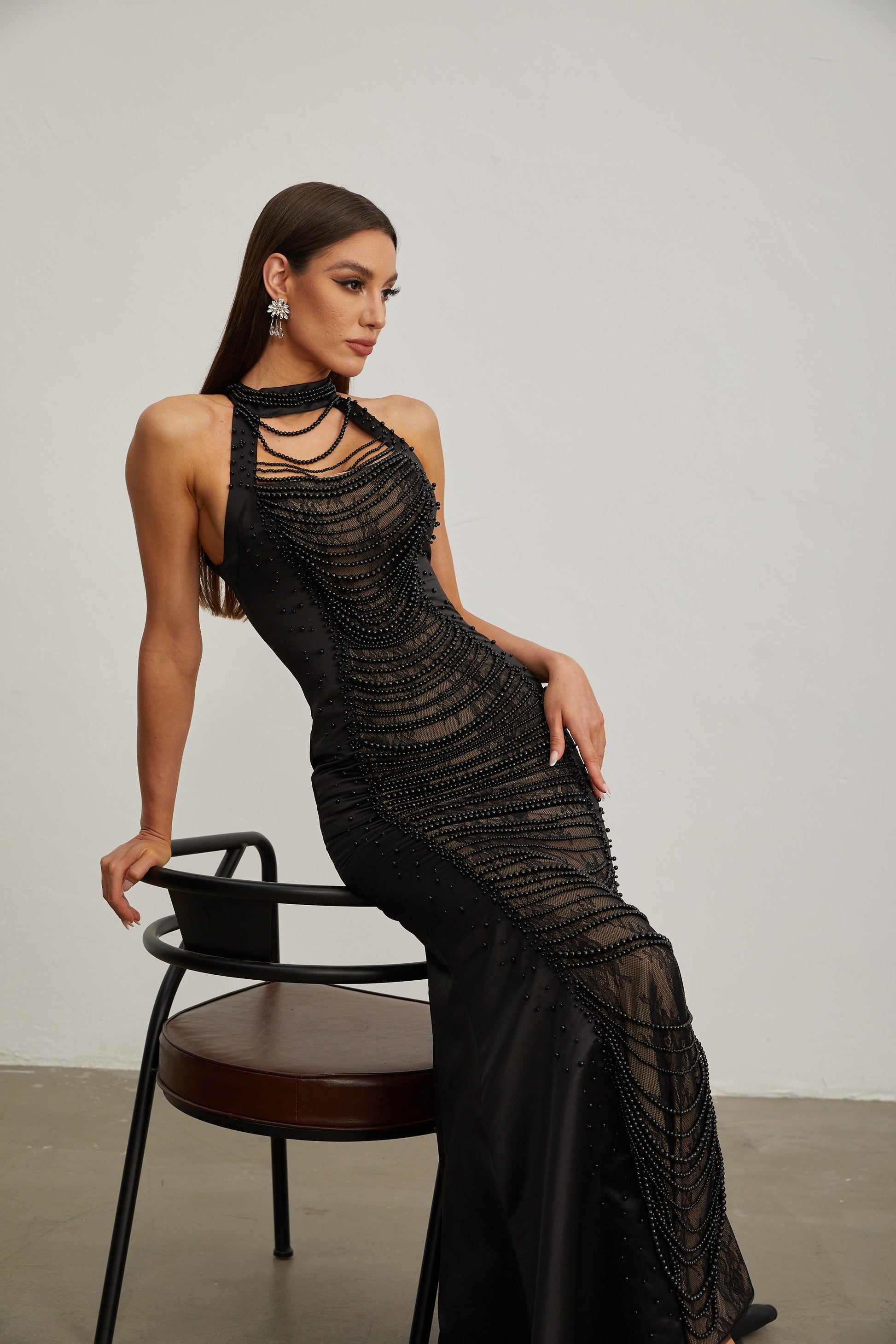 Olivia Nocturne Boncuklu Denizkızı Uzun Elbise
