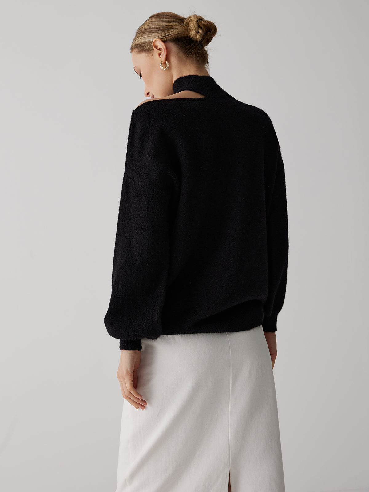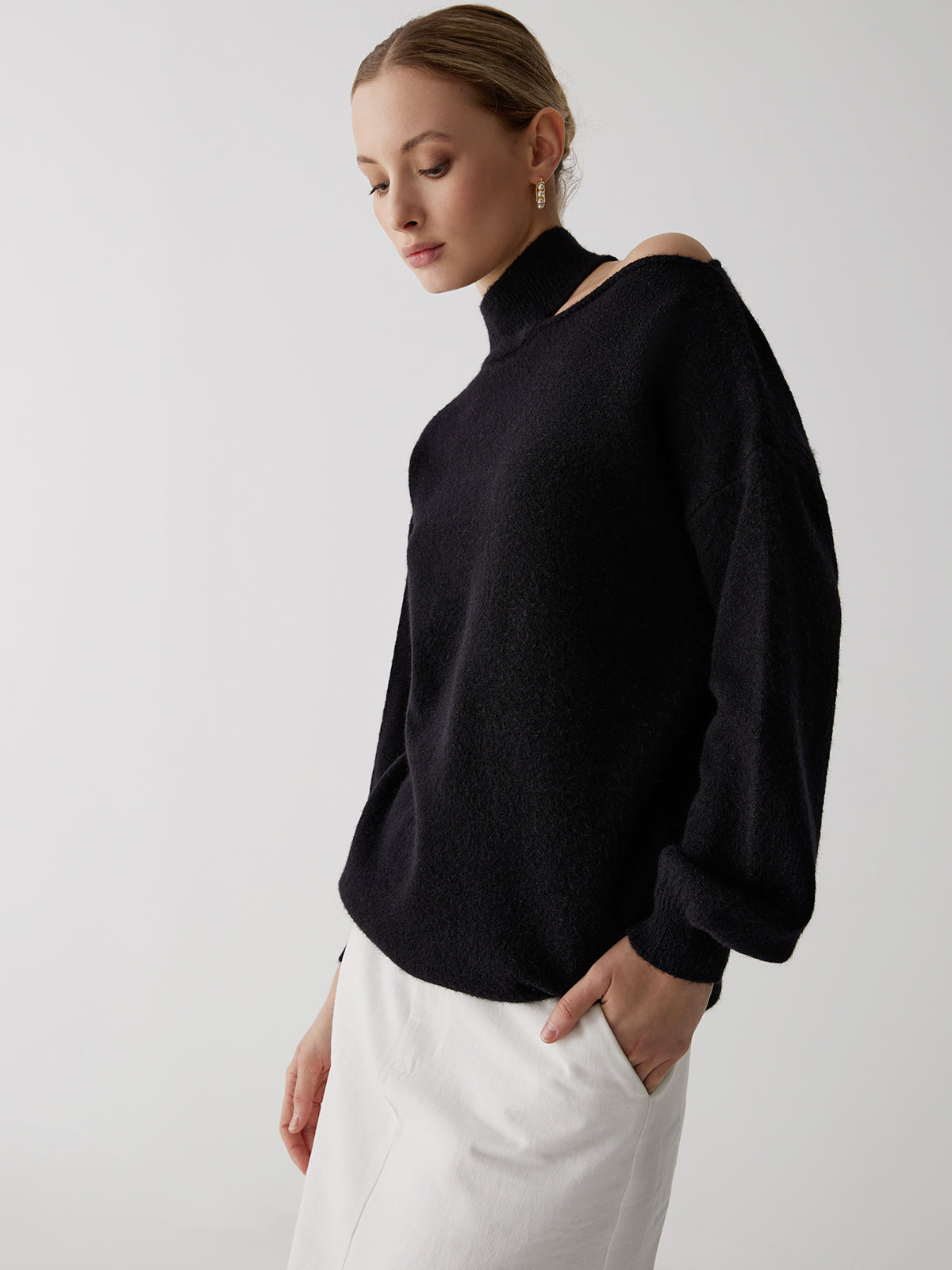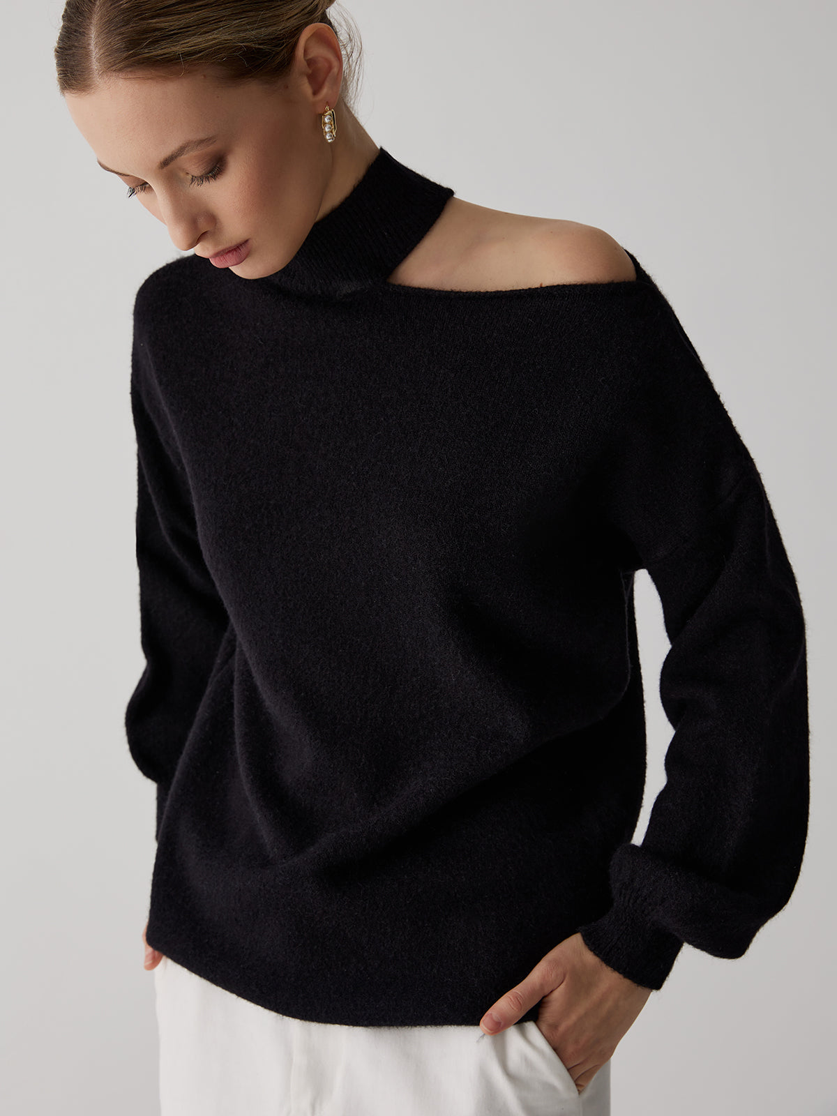 Omuzları Açık Balıkçı Yaka Uzun Kollu Kazak