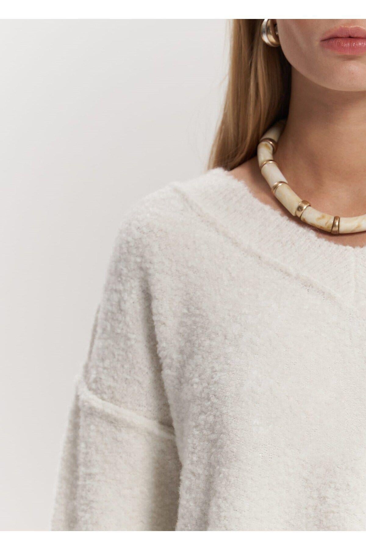 Peoria Boyunluk Detay V Yaka Ekru Triko Kazak