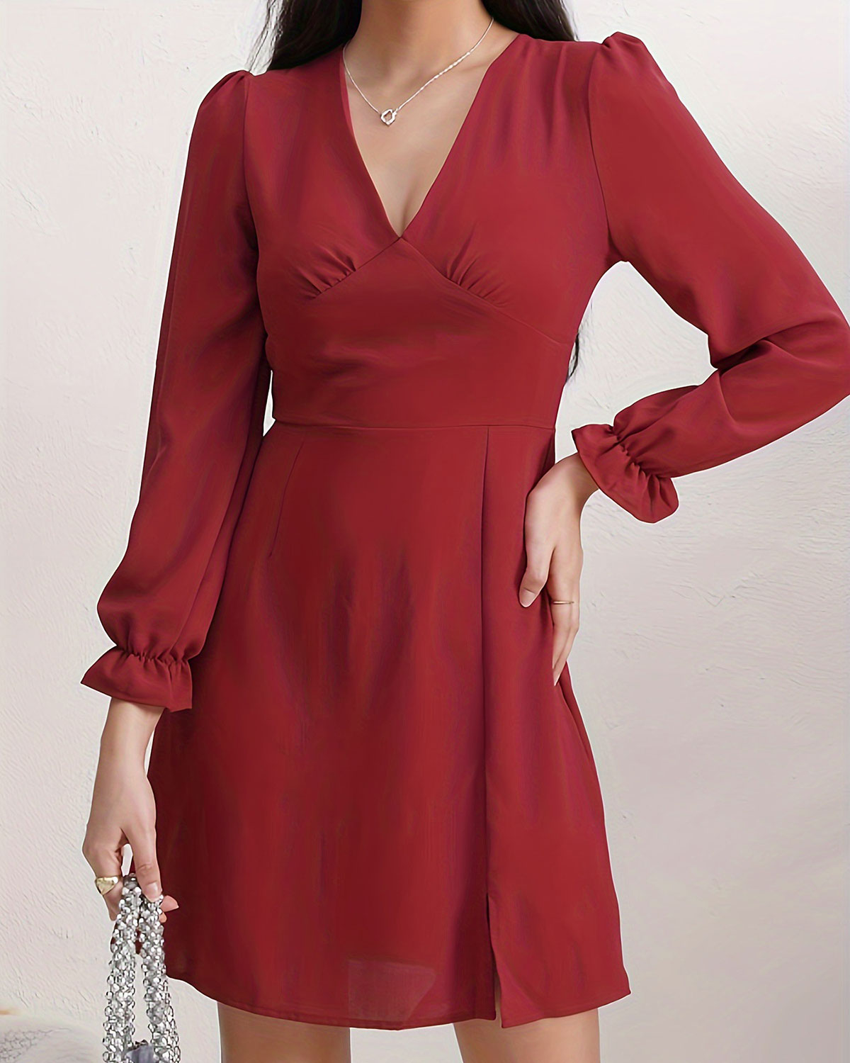 Kırmızı Şair Kollu A Kesim Mini Elbise