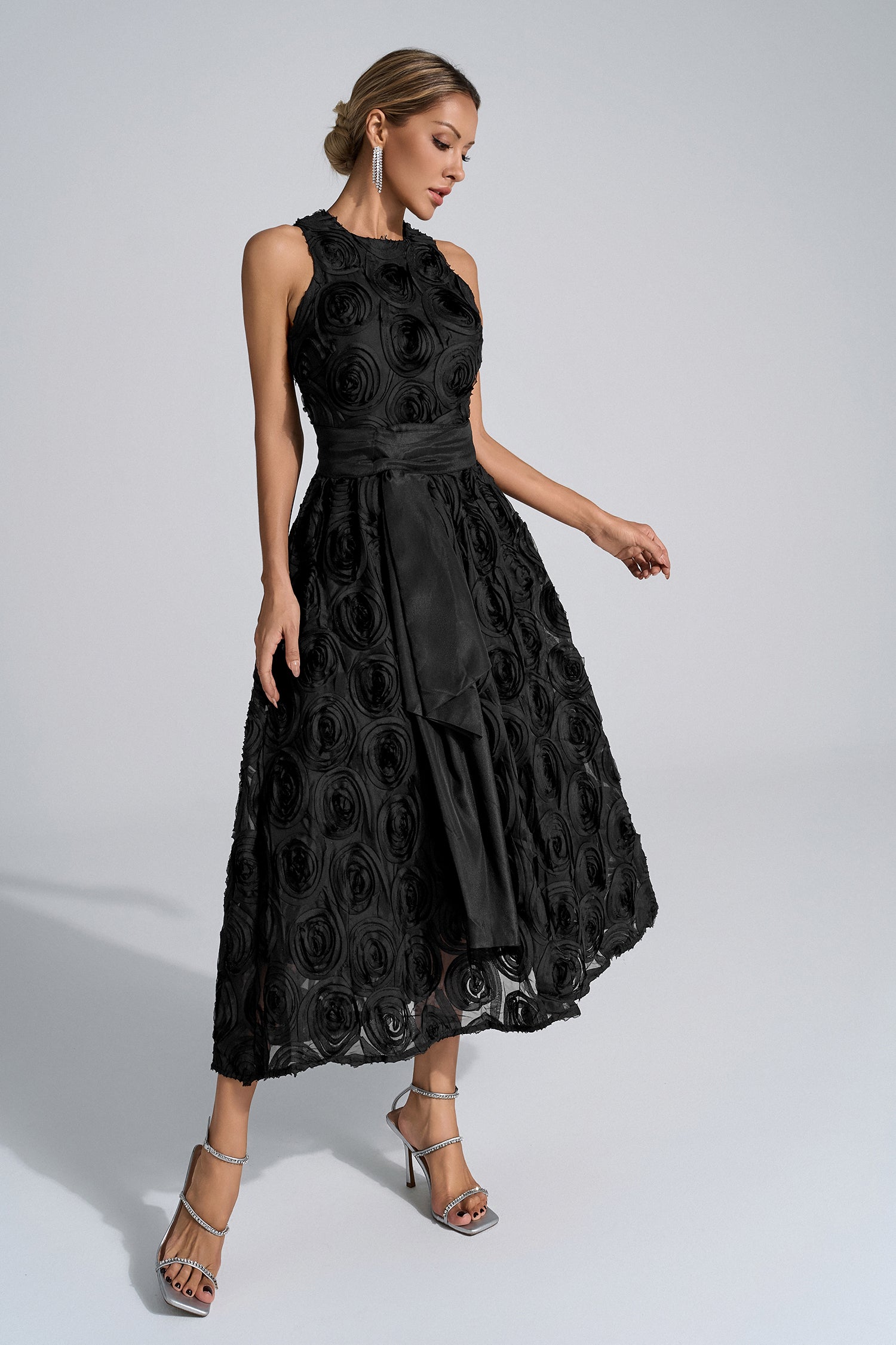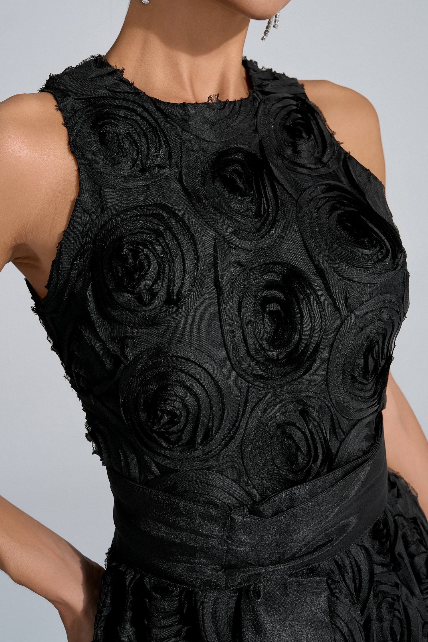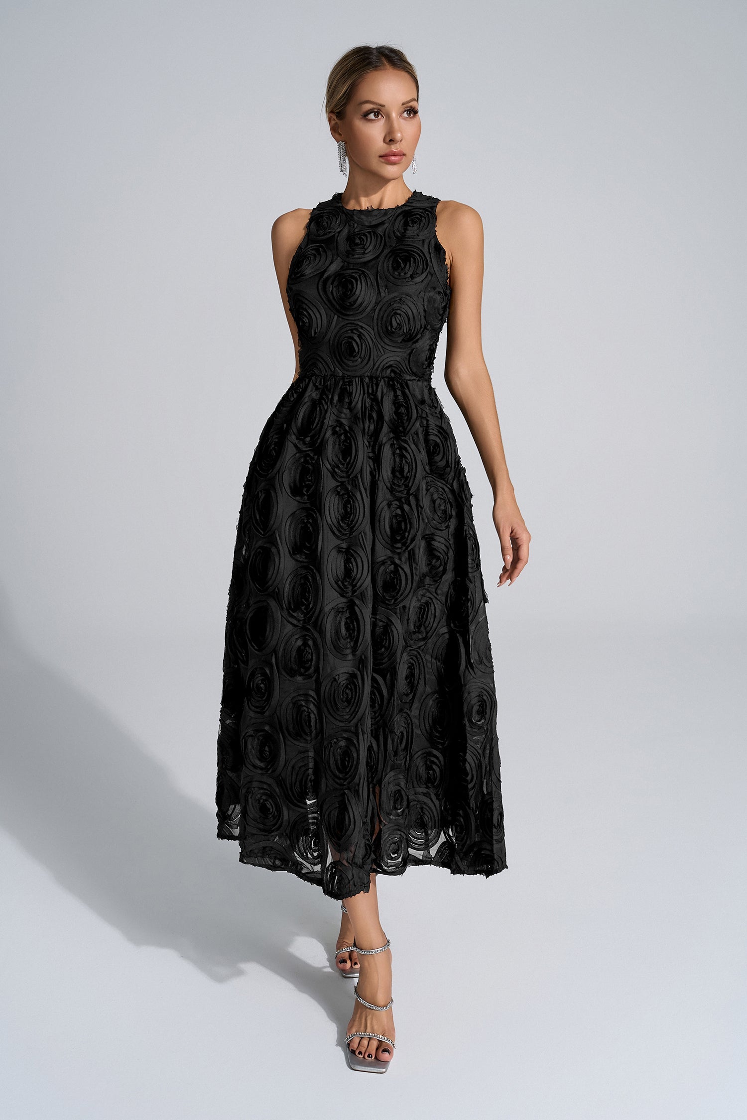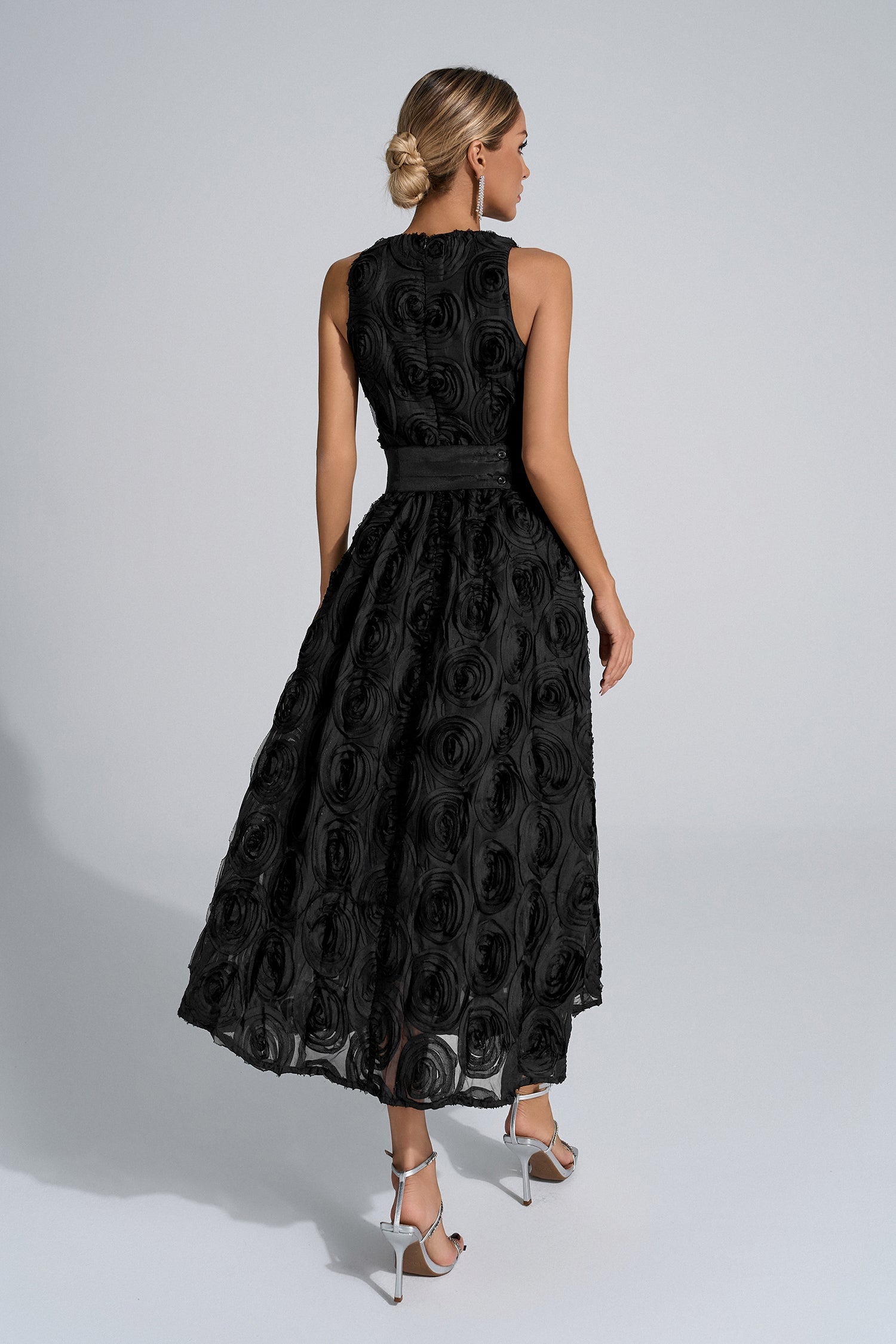 Rosemary Siyah 3D Çiçekli Uzun Elbise