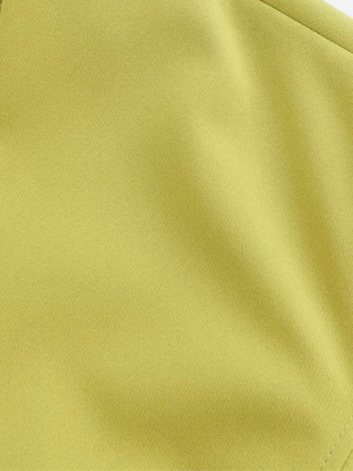 Minimalist tasarımı ve modern çizgileriyle dikkat çeken bu sarı-kireç tonlu blazer ceket, ince kemer detayıyla zarif bir dokunuş sunuyor. Şıklığı sade bir şekilde yansıtan bu parça, her ortamda fark yaratmanızı sağlayacak!