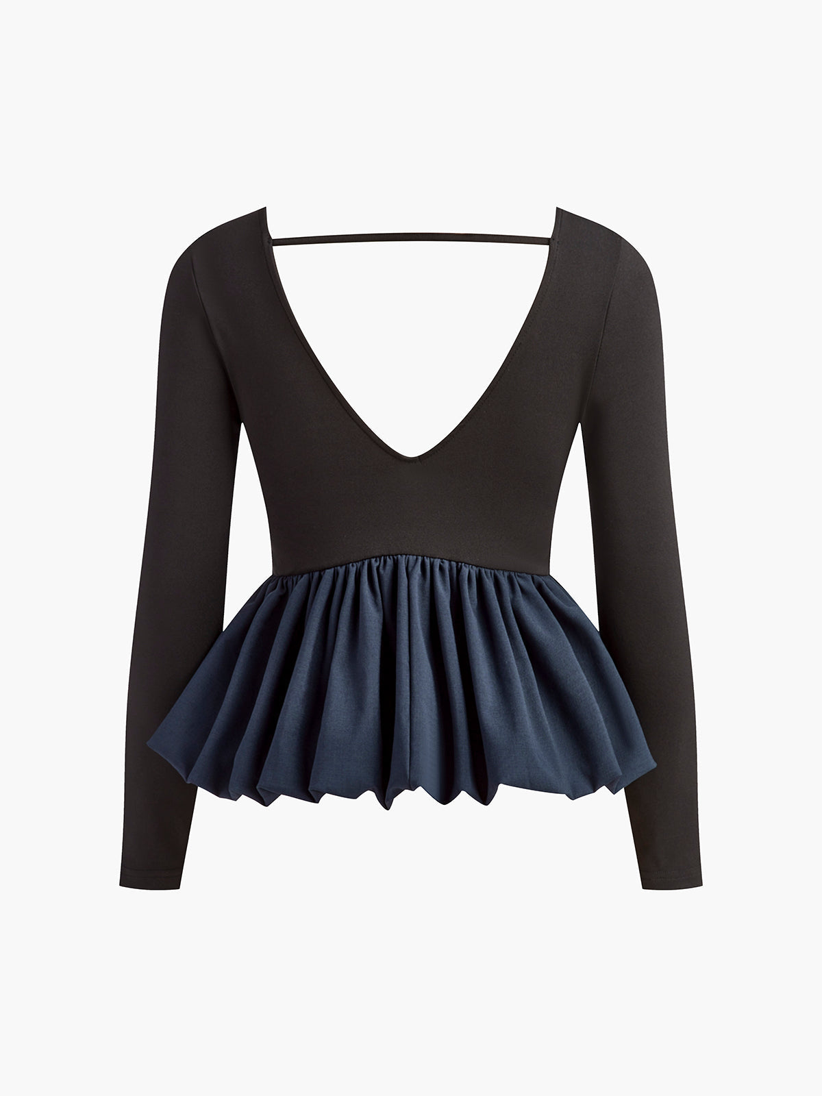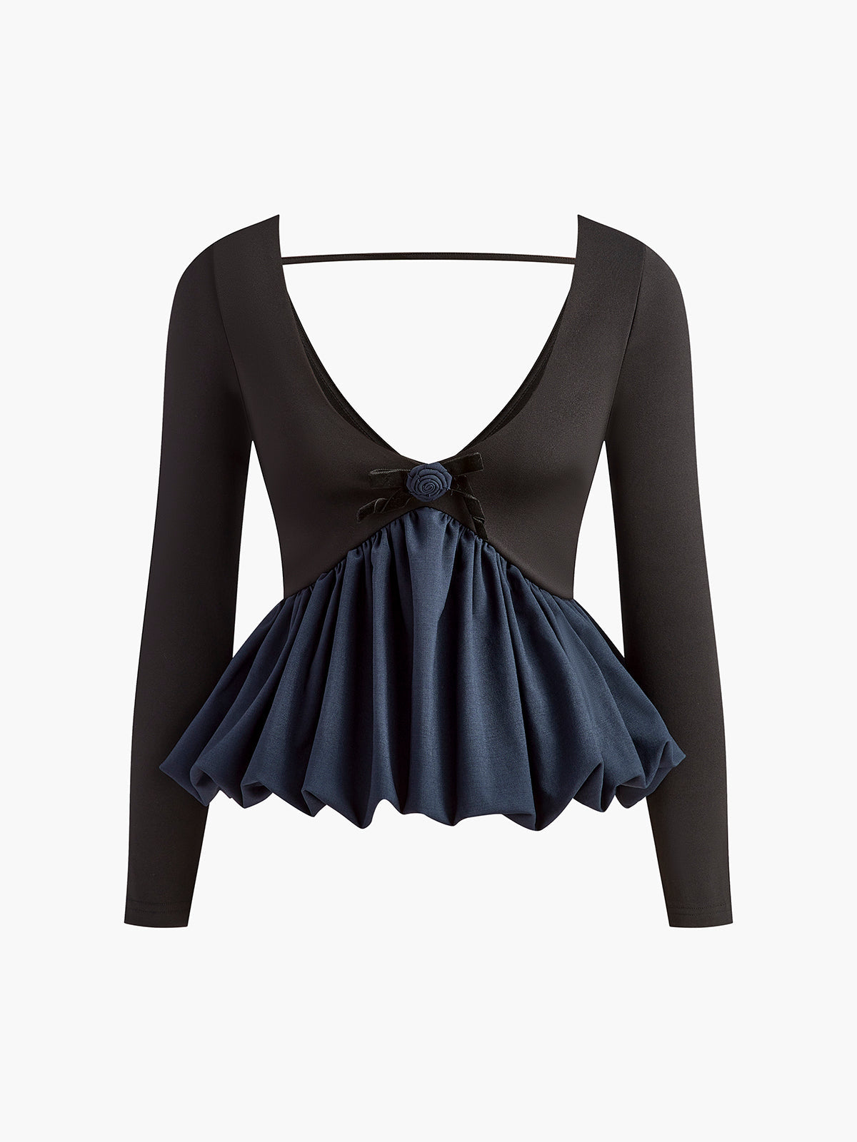 Fiyonk Detaylı Uzun Kollu V Yaka Bluz