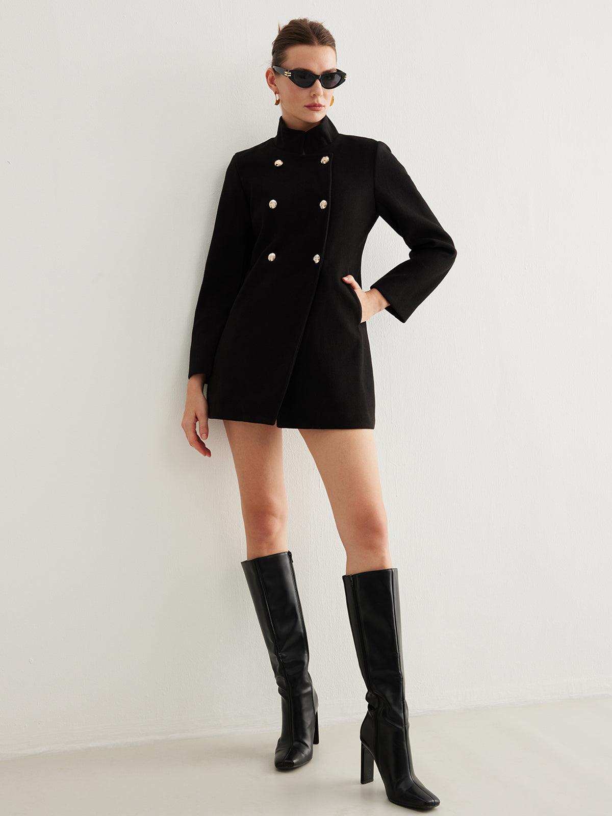 Siyah Altın Düğme Detaylı Şık Kaban Blazer