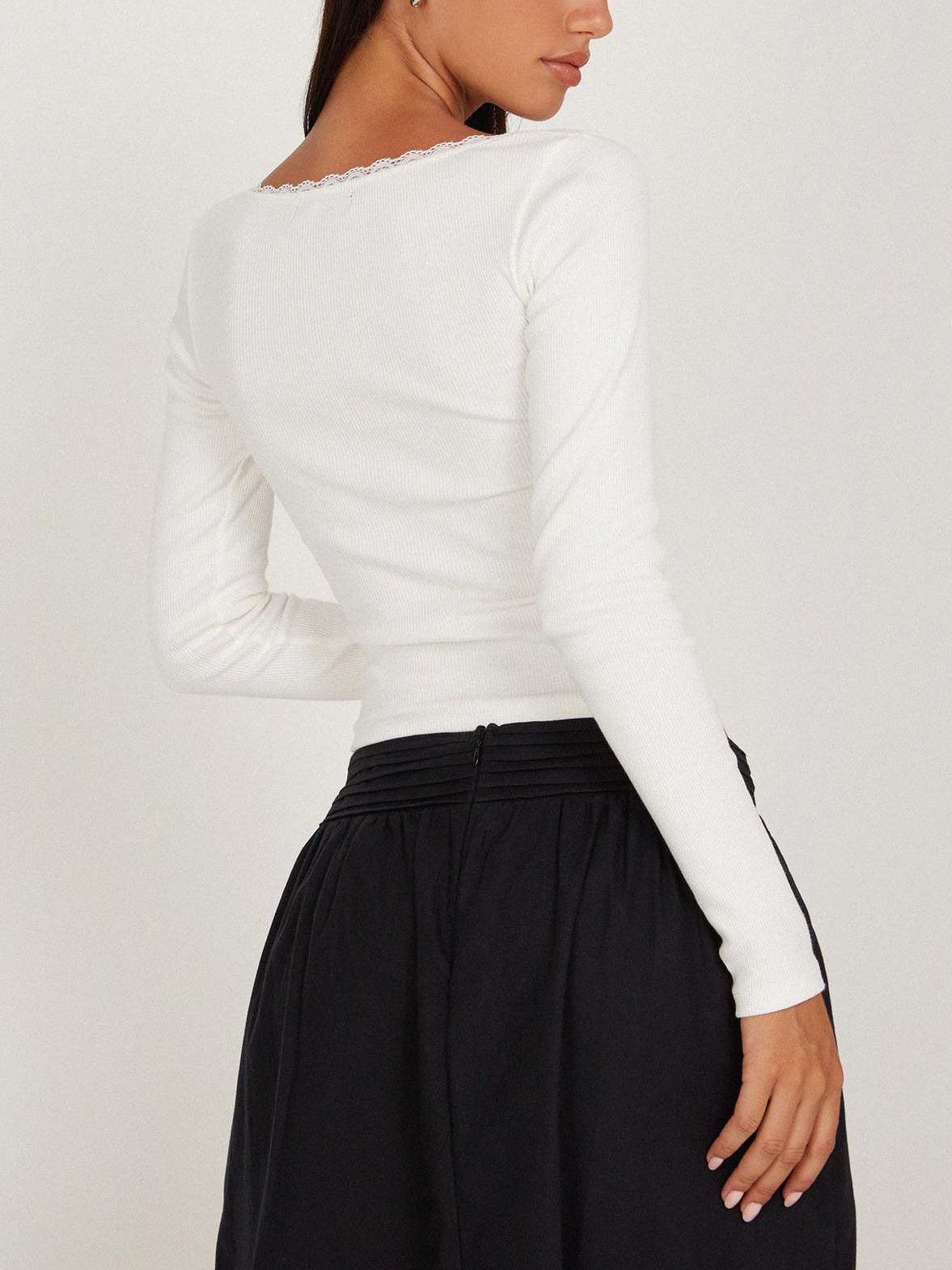 Zarif ve modern bir tarz sunan siyah dantel detaylı kare yaka bluz, şıklığınızı tamamlayacak! Yumuşak dokusu ve vücuda oturan kesimi ile hem günlük kombinlerinizde hem de özel davetlerde göz kamaştıracaksınız. Her dolabın vazgeçilmez parçası olmaya aday!
