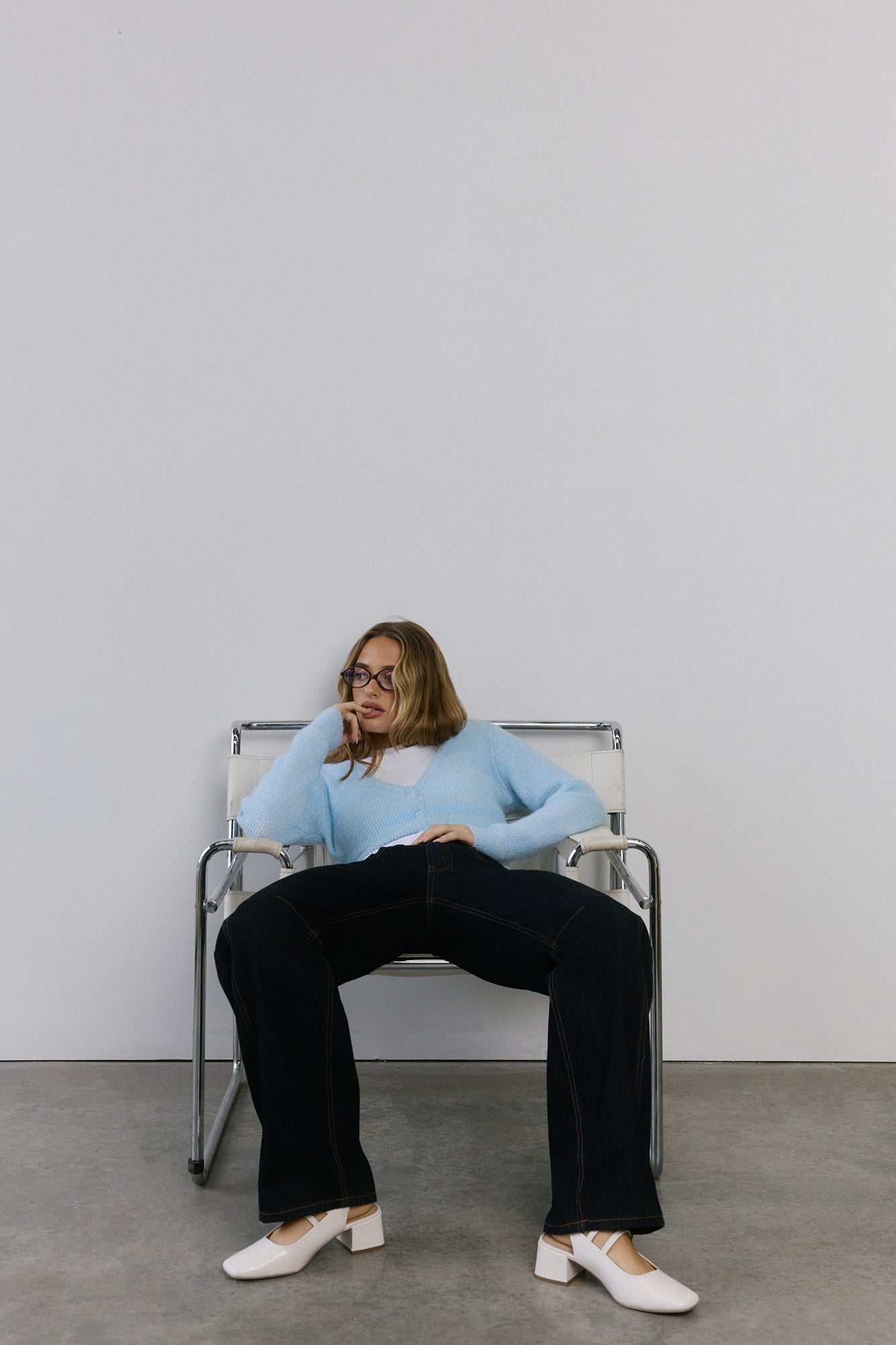 Yumuşak dokusu ve pastel tonu ile öne çıkan Baby Blue Knit Crop Hırka, günlük stilinize zarif bir dokunuş katıyor. V yaka kesimi ve düğme detaylarıyla modern bir görünüm sunarken, crop boy tasarımı sayesinde hem jeanlerle hem de eteklerle mükemmel uyum sağlar.