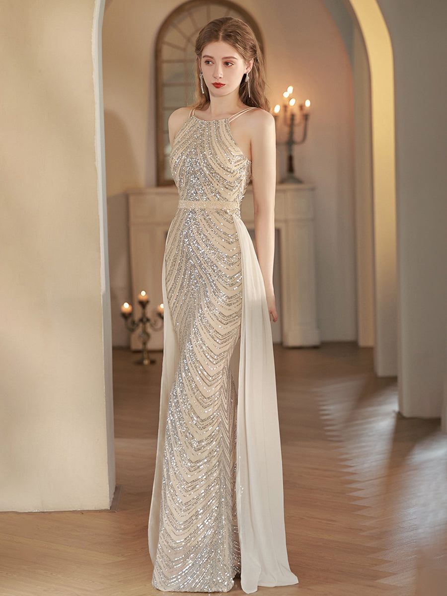 Spagetti Deniz Kızı Payet Abiye Maxi Elbise