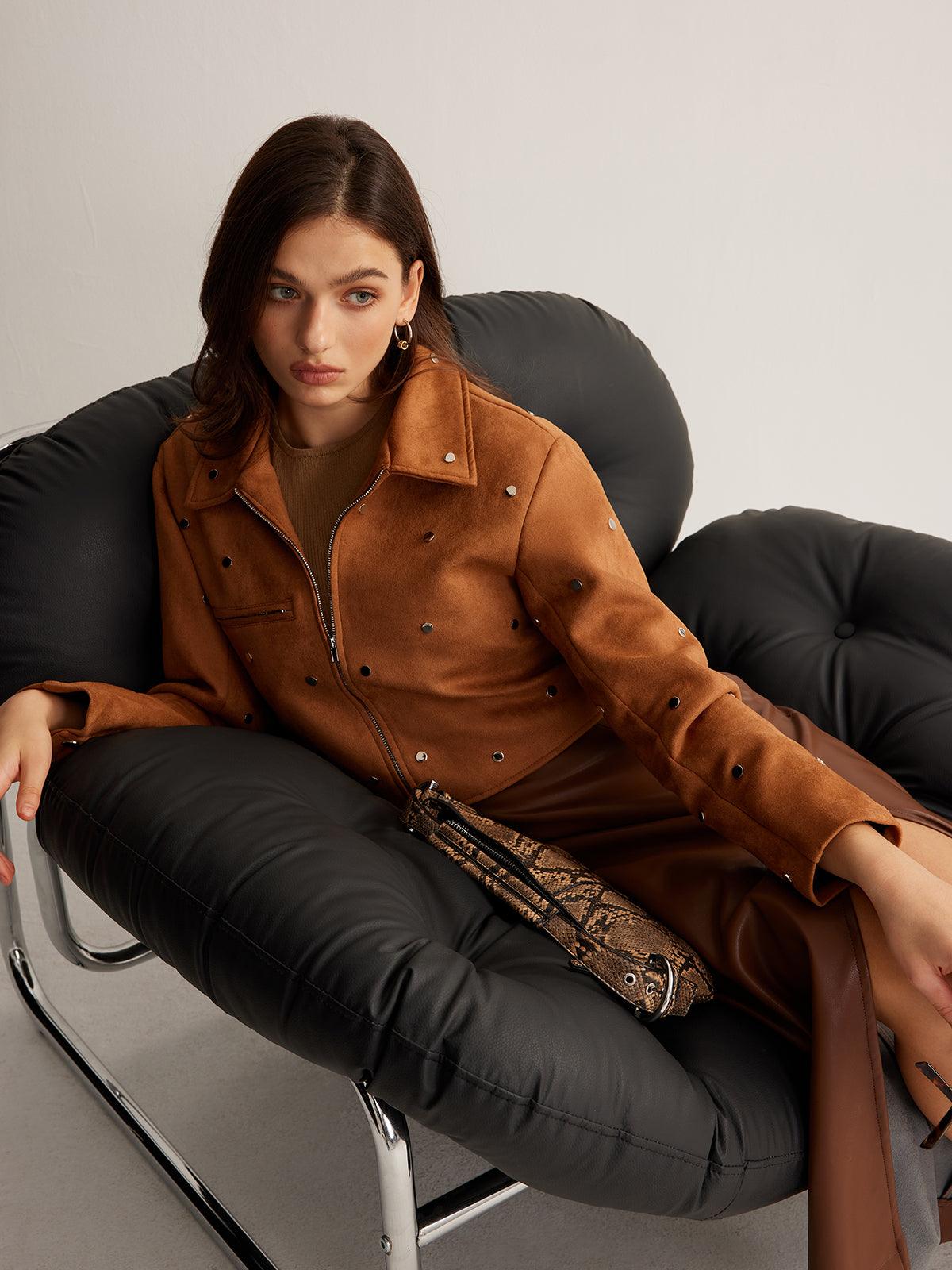 Metal Detaylı Tarçın Renk Kısa Ceket
