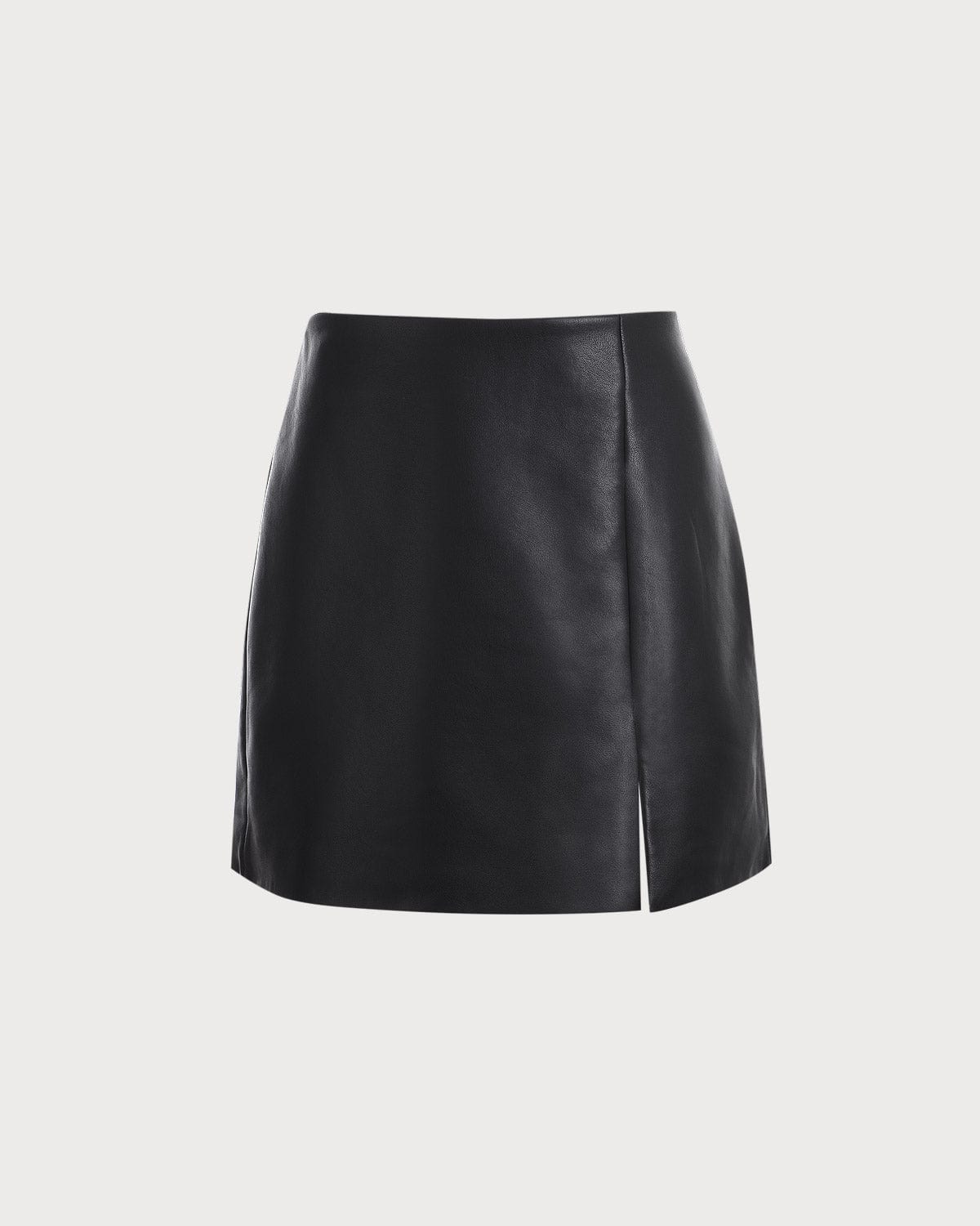 Yan Yırtmaçlı Pu Deri A Kesim Mini Etek