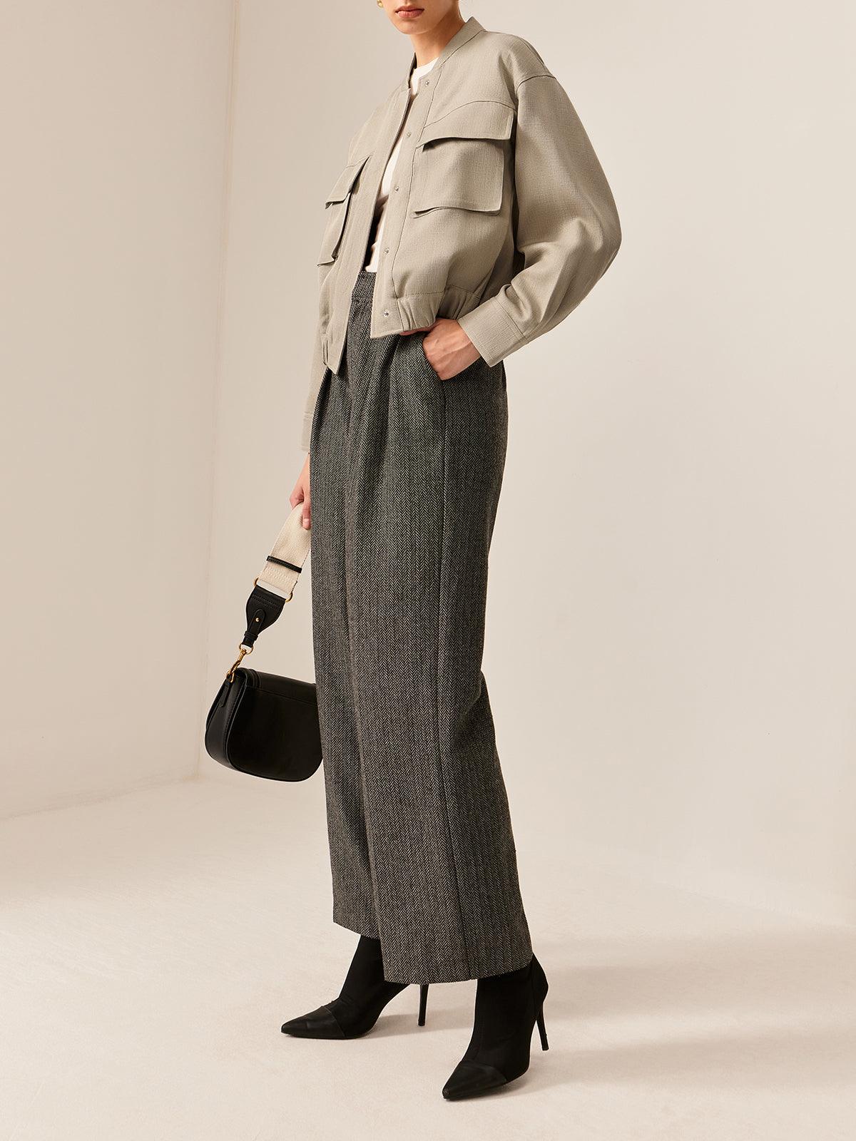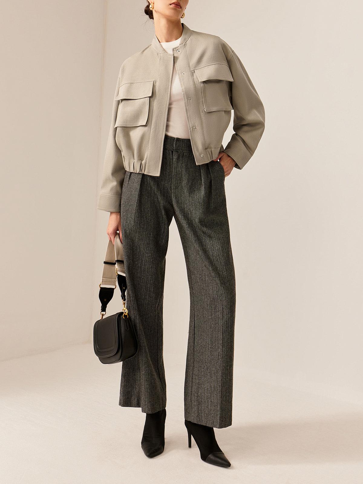 Urban Utility Ceket’i klasik kesim gri pantolon ve beyaz bir bluz ile kombinleyerek zarif ve modern bir görünüm oluşturabilirsiniz. Siyah topuklu ayakkabılar ve sade bir çantayla tamamlayarak sofistike bir dokunuş ekleyebilir, günlük kullanım için beyaz sneakerlarla rahat bir şıklık yaratabilirsiniz.