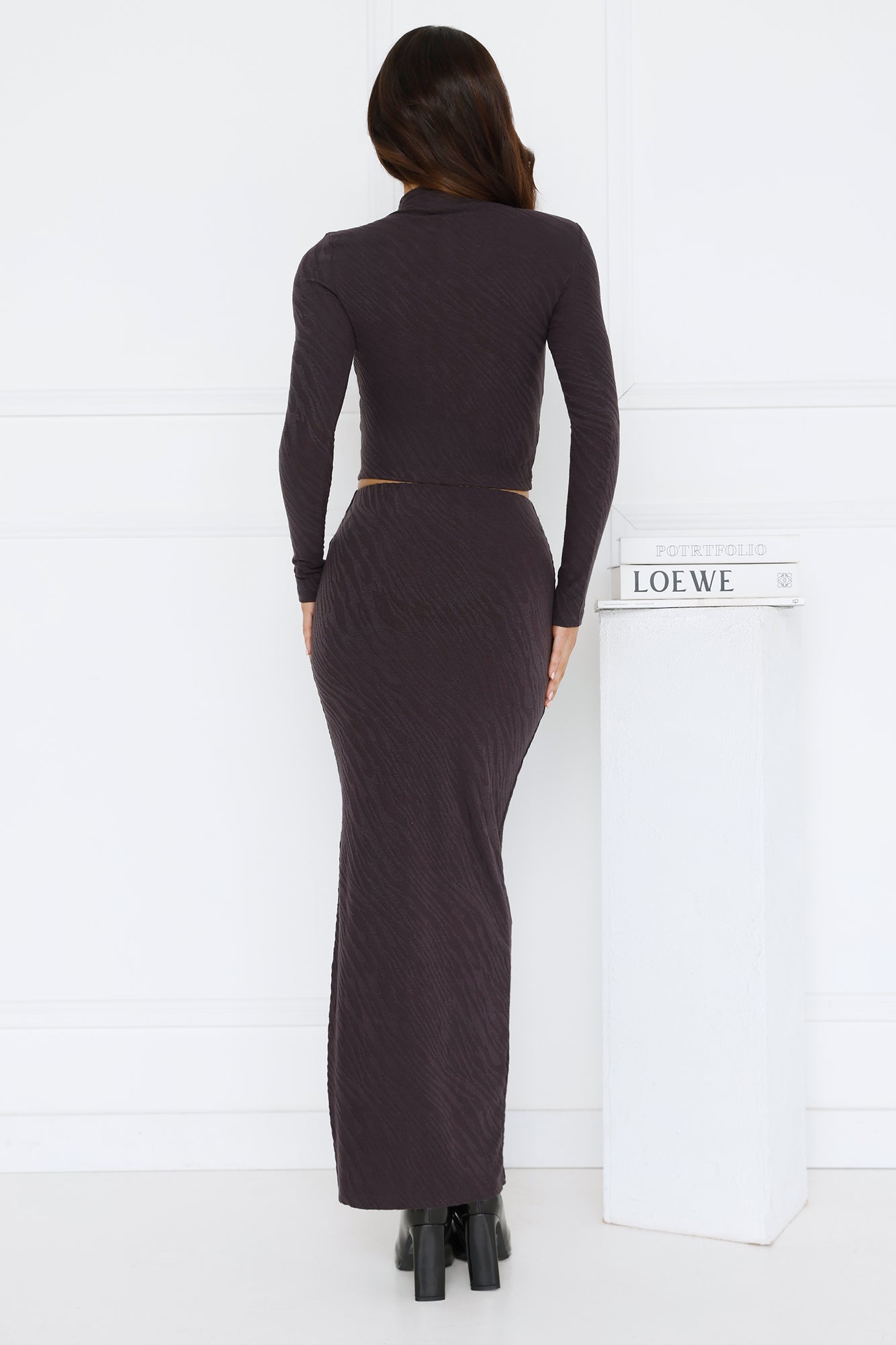 Minimalist ve modern çizgisiyle dikkat çeken siyah ikili takım, yüksek bel uzun eteği ve uzun kollu crop üstüyle zarif bir şıklık sunar. Vücuda oturan kesimi ve yan yırtmaç detayı sayesinde hem gündüz hem de akşam davetlerinde rahatlıkla tercih edilebilir. Topuklu ayakkabılarla daha şık, botlarla ise daha cool bir görünüm yakalayabilirsiniz.