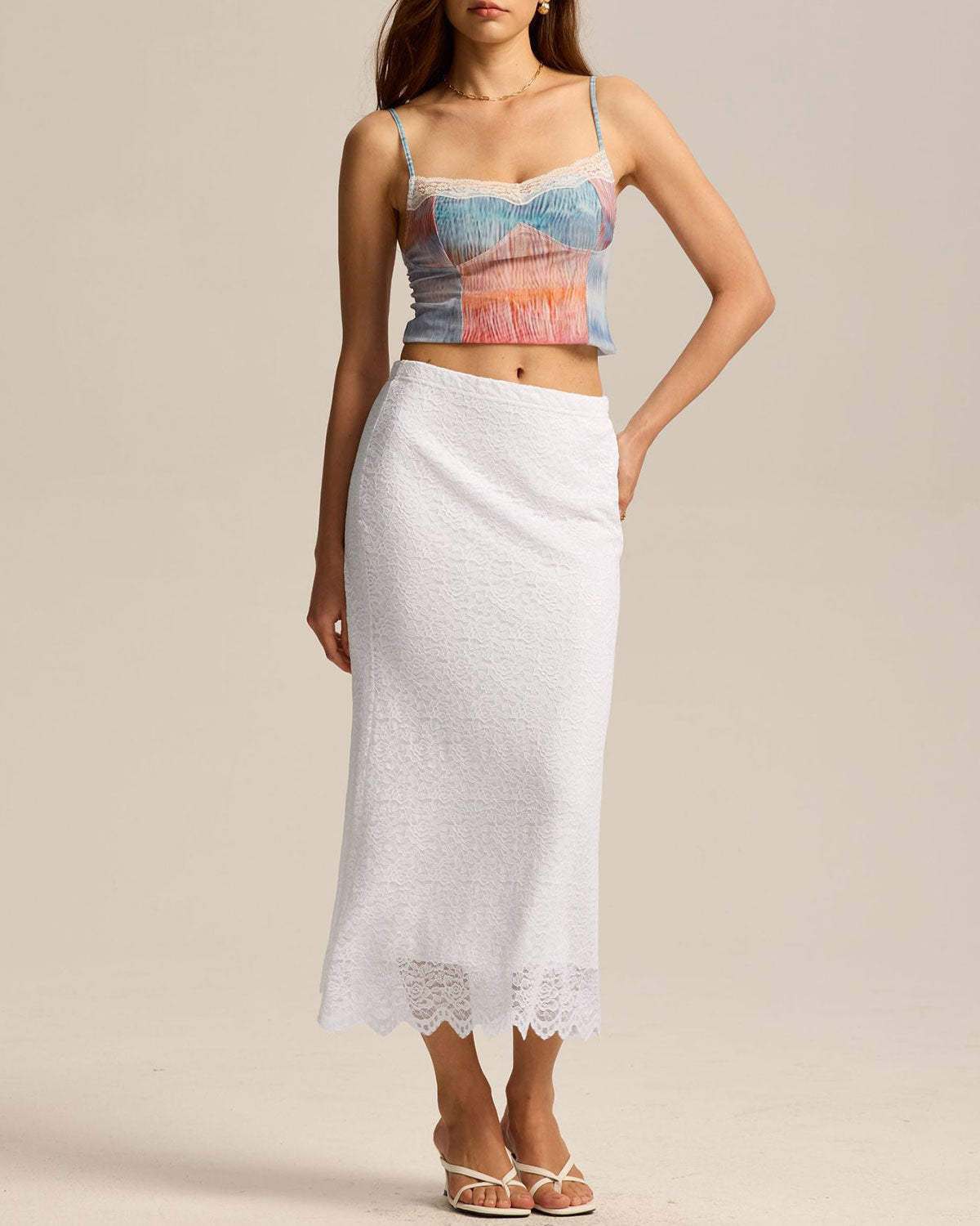 Beyaz Doğal Belli Örgü Lale Midi Etek