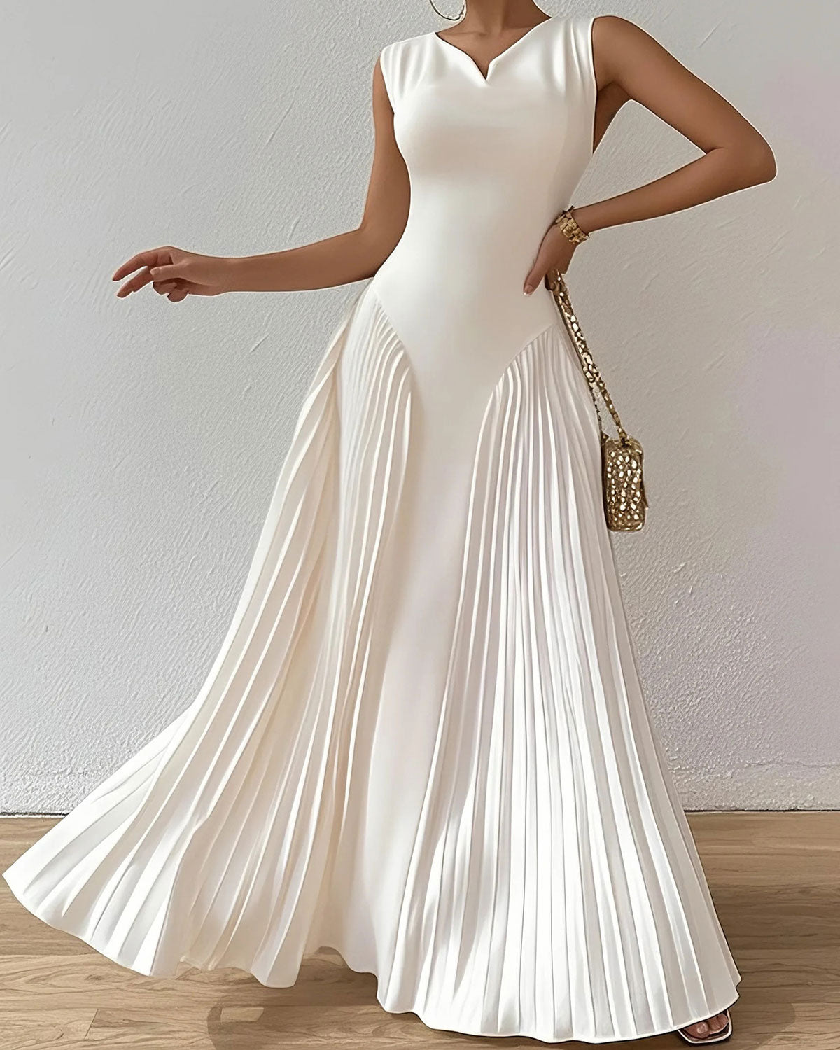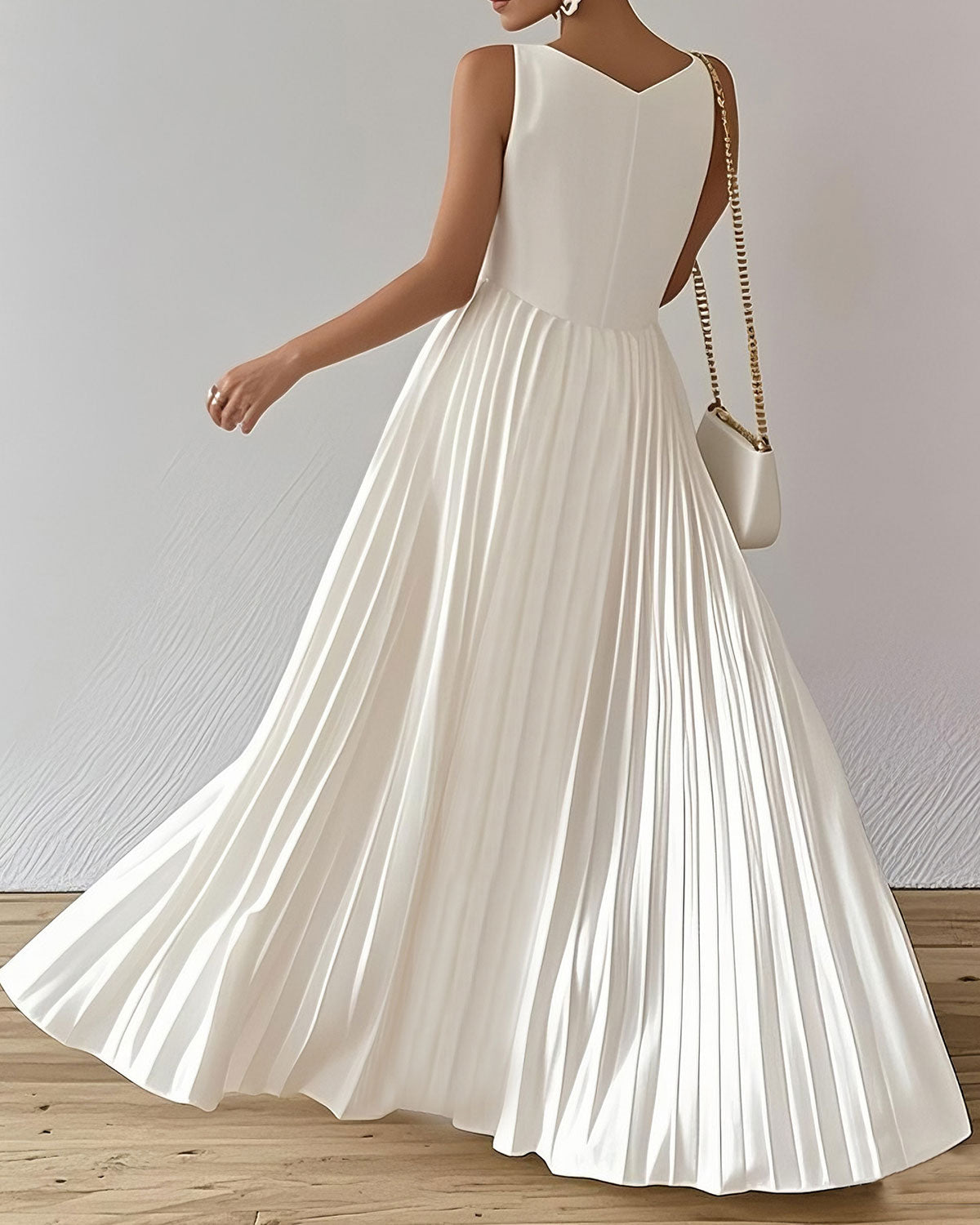 Beyaz V Yaka Kolsuz Uzun Elbise