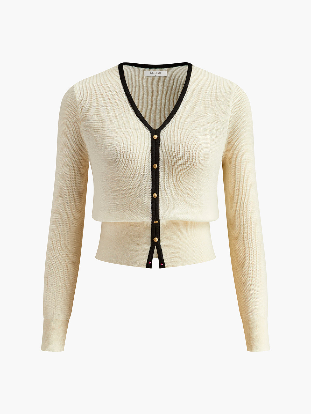 Yün Karışımlı Kontrast Yan Biye Hırka