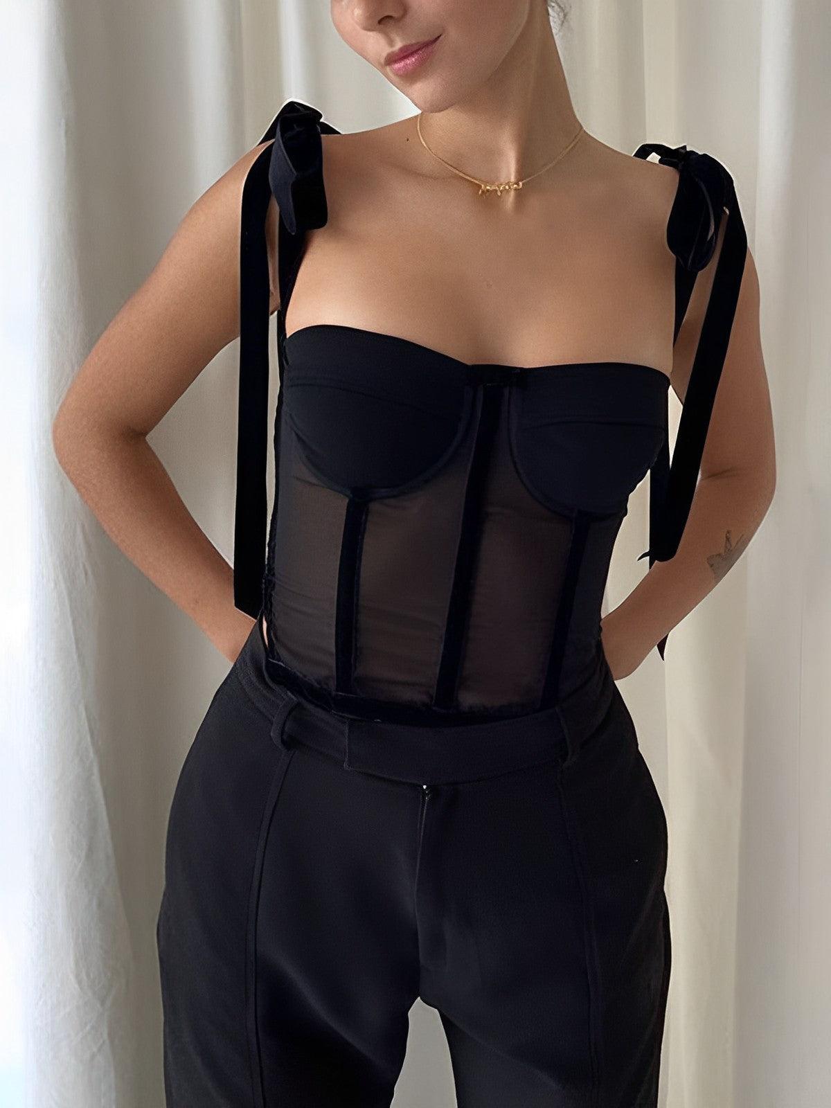 Zarif Siyah Askılı Korsaj Bluz