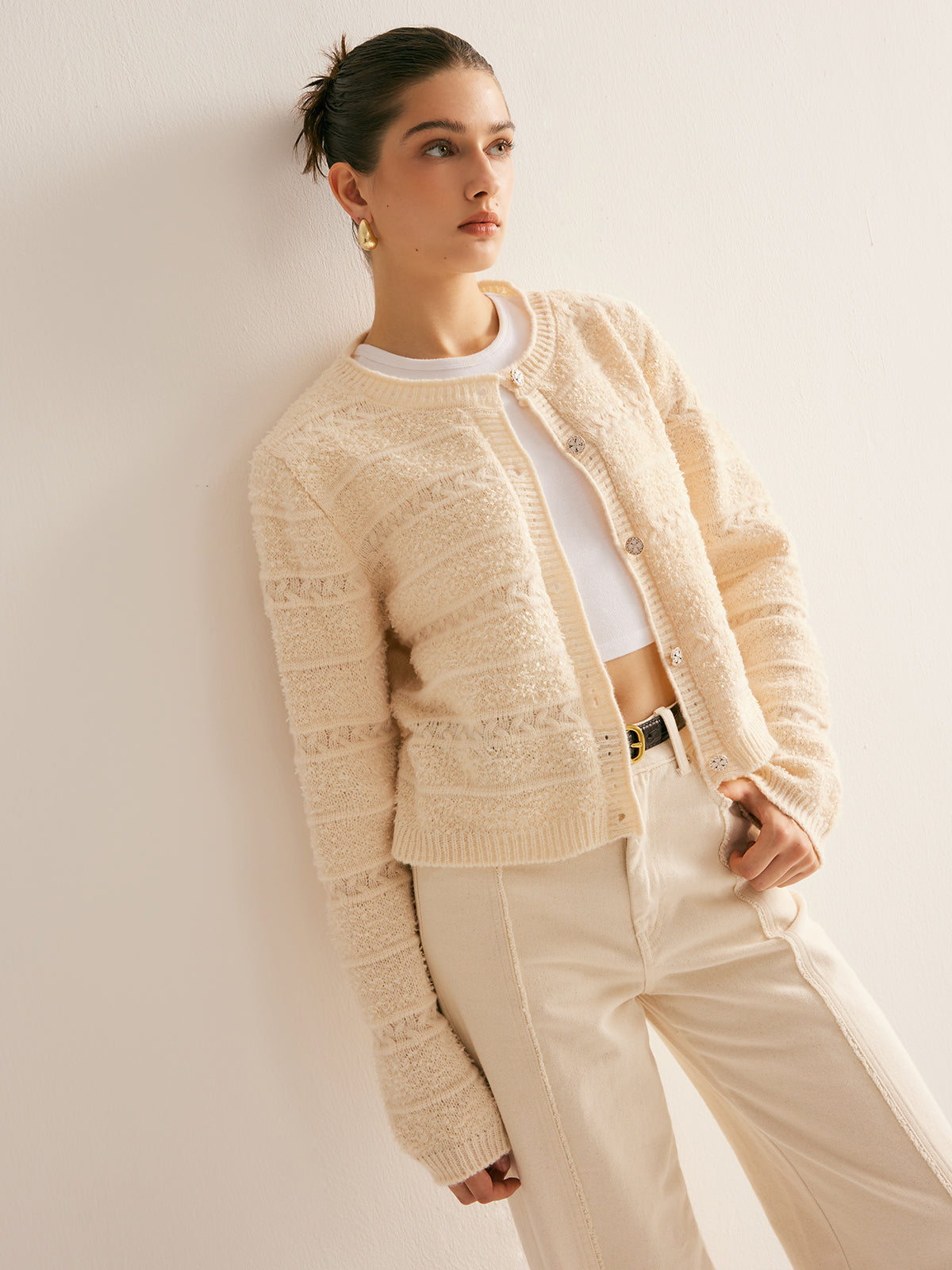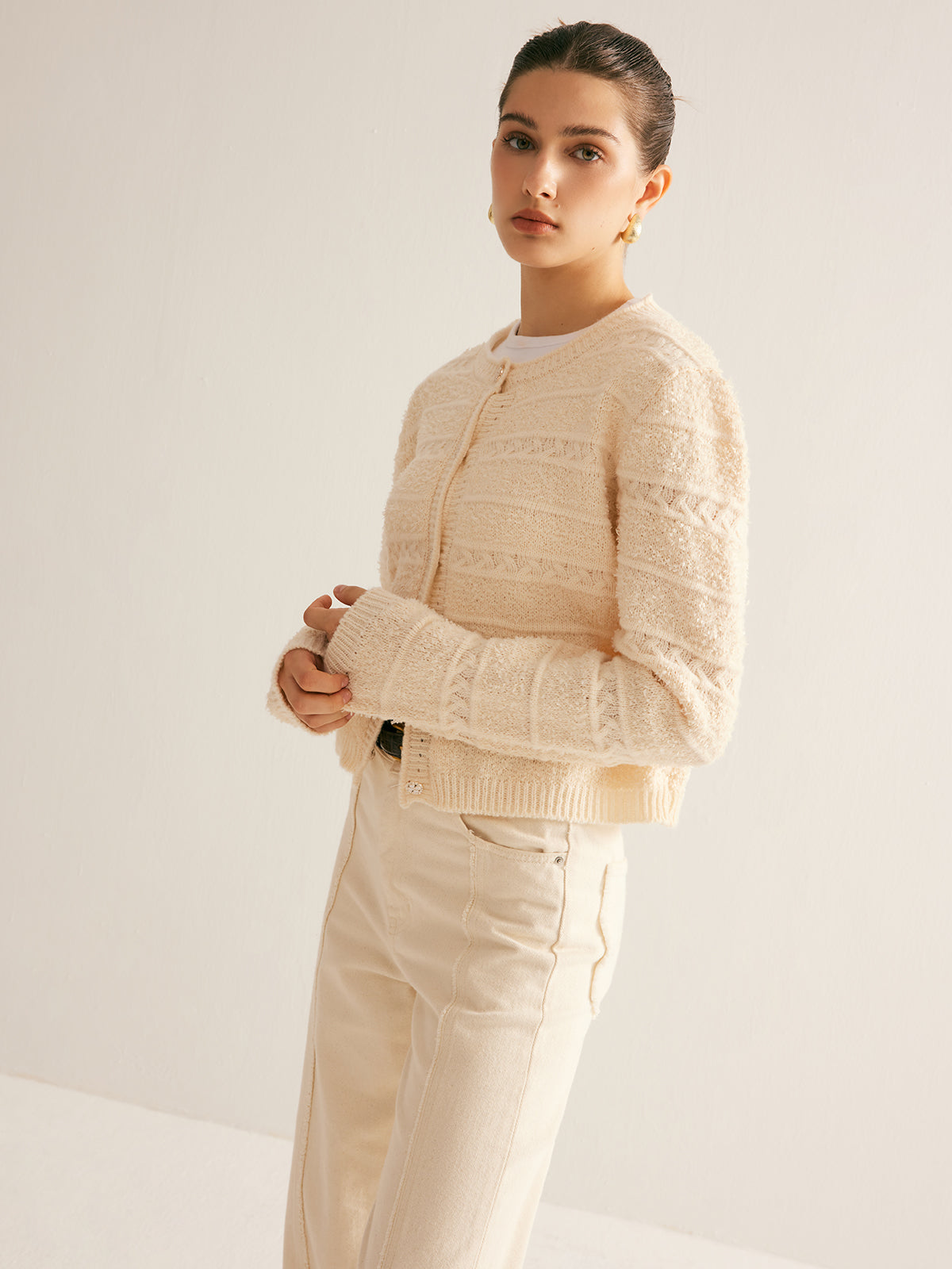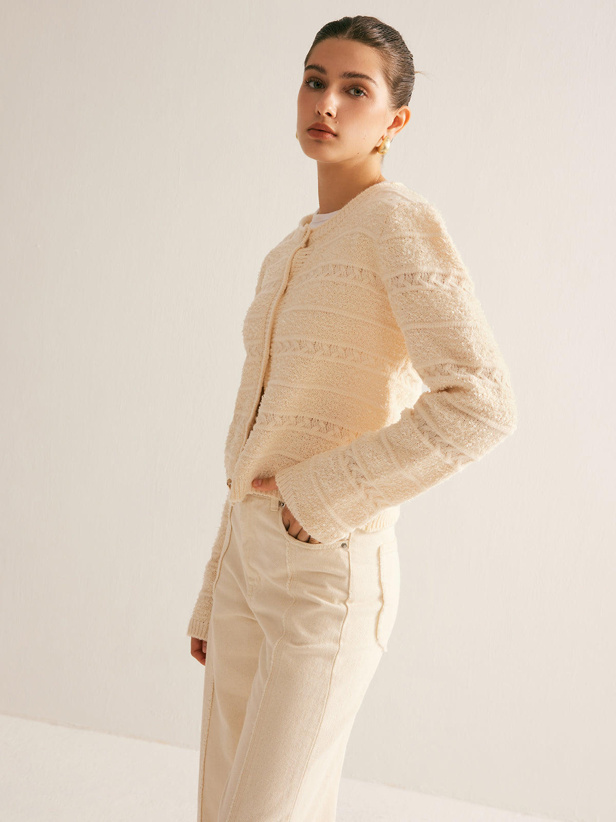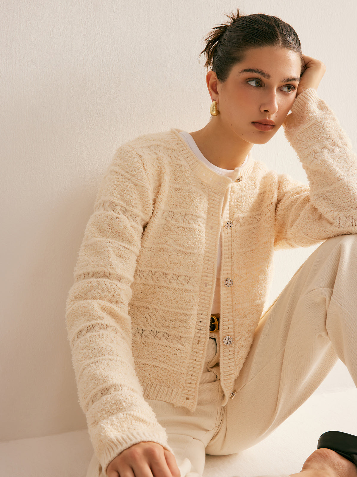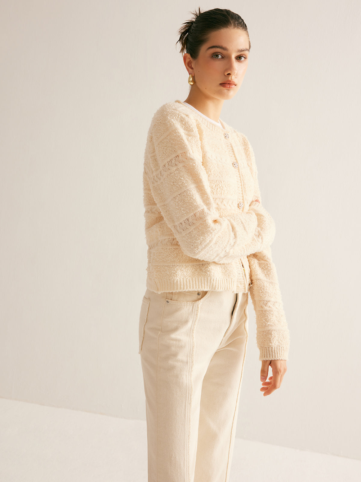 Zarif Streç Düğmeli Hırka