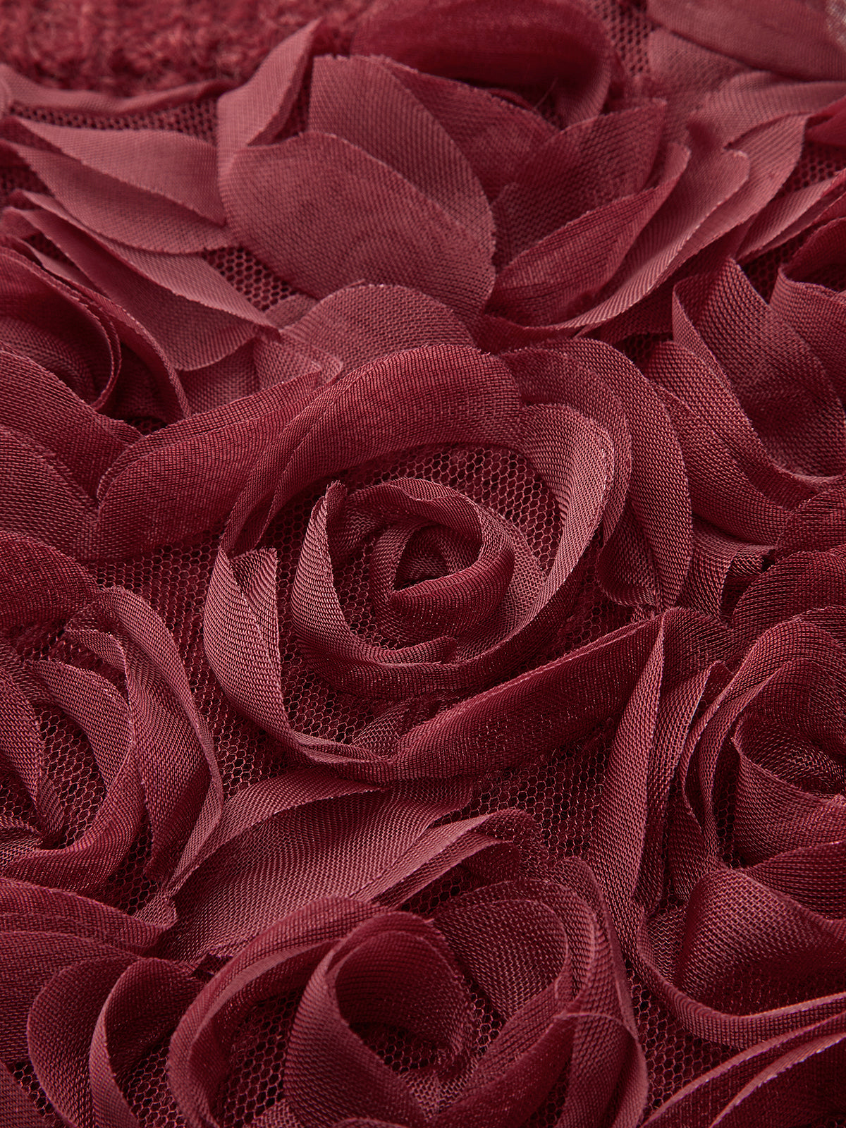 Yüksek Yakalı ve Midi Etekli Çiçek Desenli Dantel Elbise